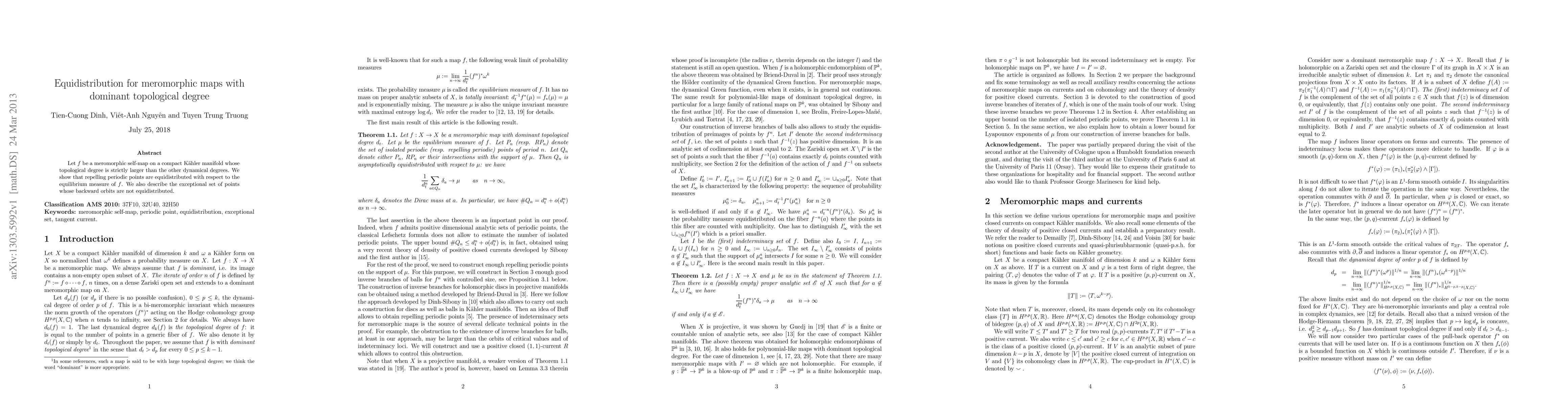 Summary: This paper demonstrates that repelling periodic points of meromorphic self-maps on compact Kähler manifolds with dominant topological degree are equidistributed with respect to the equilibrium measure, while identifying the exceptional set of points with non-equidistributed backward orbits.