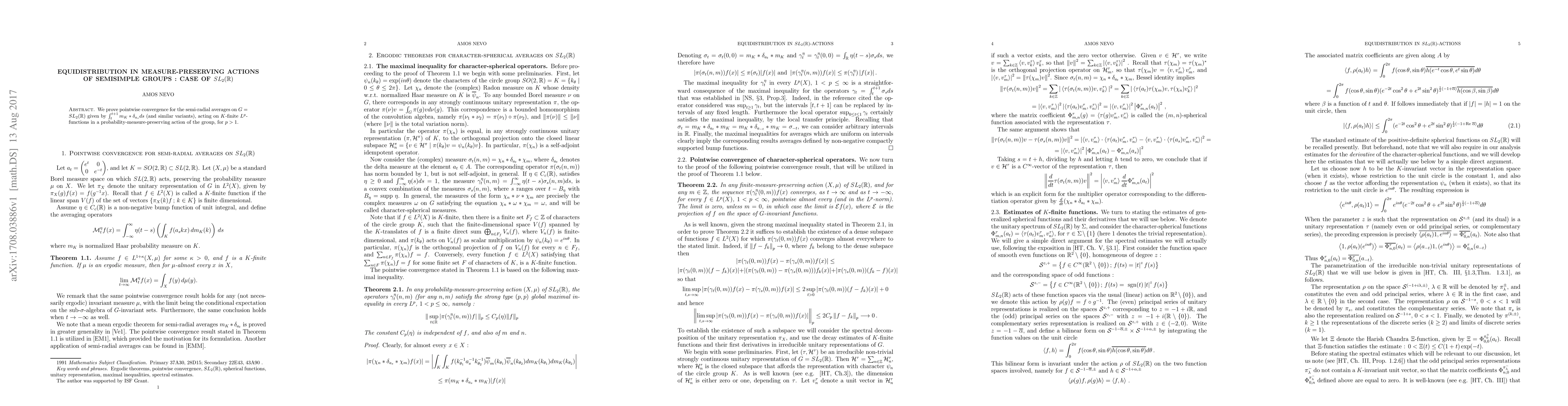 Researchers prove pointwise convergence for semi-radical averages on SL_2(R) group actions preserving probability measures in L^p functions for p > 1.