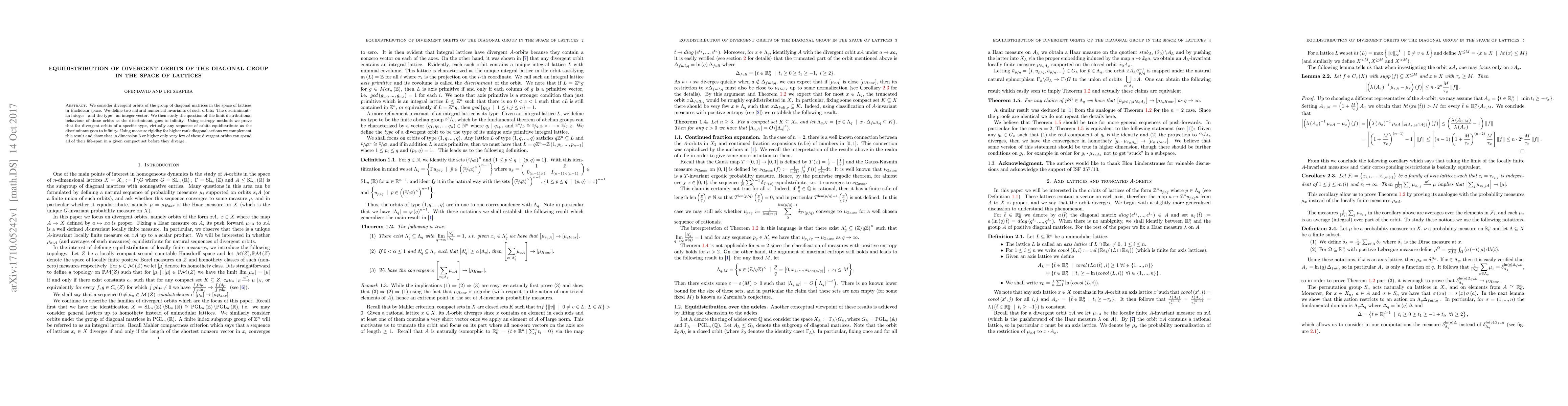 This paper investigates the equidistribution of divergent orbits of the diagonal group in the space of lattices, defining discriminant and type invariants. It proves that for specific types, virtually any sequence of orbits equidistributes as the discriminant tends to infinity, and demonstrates that in dimensions 3 or higher, only a few orbits can remain within a compact set before diverging.