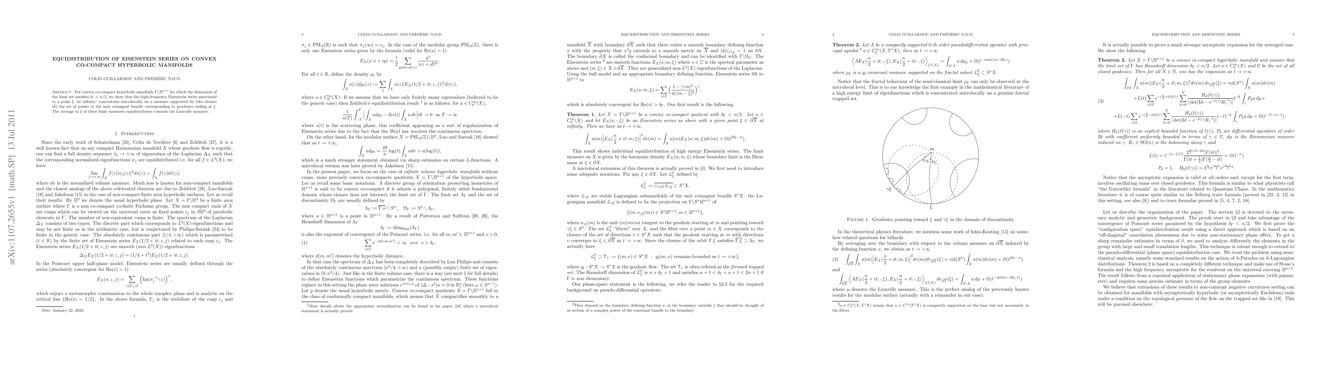 The paper employs techniques from harmonic analysis, specifically focusing on the equidistribution properties of Eisenstein series on convex co-compact hyperbolic manifolds. It utilizes semi-classical analysis and pseudo-differential operators to study the behavior of these series as frequency parameters tend to infinity.