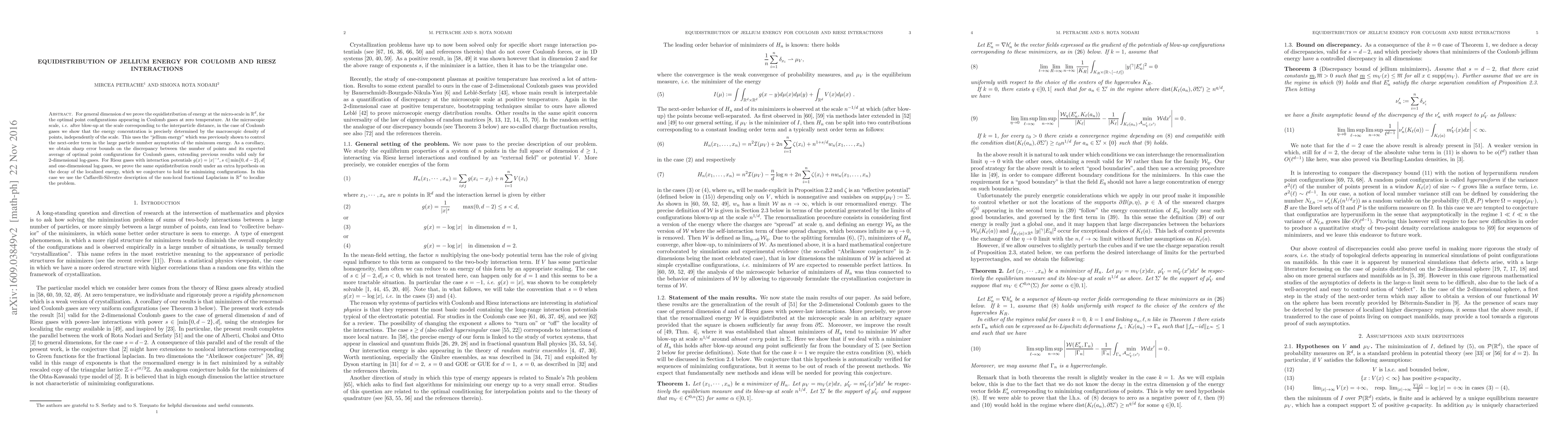 For general dimension $d$ we prove the equidistribution of energy at the micro-scale in $\mathbb R^d$, for the optimal point configurations appearing in Coulomb gases at zero temperature. At the microscopic scale, i.e. after blow-up at the scale corresponding to the interparticle distance, in the case of Coulomb gases we show that the energy concentration is precisely determined by the macroscopic density of points, independently of the scale. This uses the "jellium energy" which was previously shown to control the next-order term in the large particle number asymptotics of the minimum energy. As a corollary, we obtain sharp error bounds on the discrepancy between the number of points and its expected average of optimal point configurations for Coulomb gases, extending previous results valid only for $2$-dimensional log-gases. For Riesz gases with interaction potentials $g(x)=|x|^{-s}, s\in]\min\{0,d-2\},d[$ and one-dimensional log-gases, we prove the same equidistribution result under an extra hypothesis on the decay of the localized energy, which we conjecture to hold for minimizing configurations. In this case we use the Caffarelli-Silvestre description of the non-local fractional Laplacians in $\mathbb R^d$ to localize the problem.