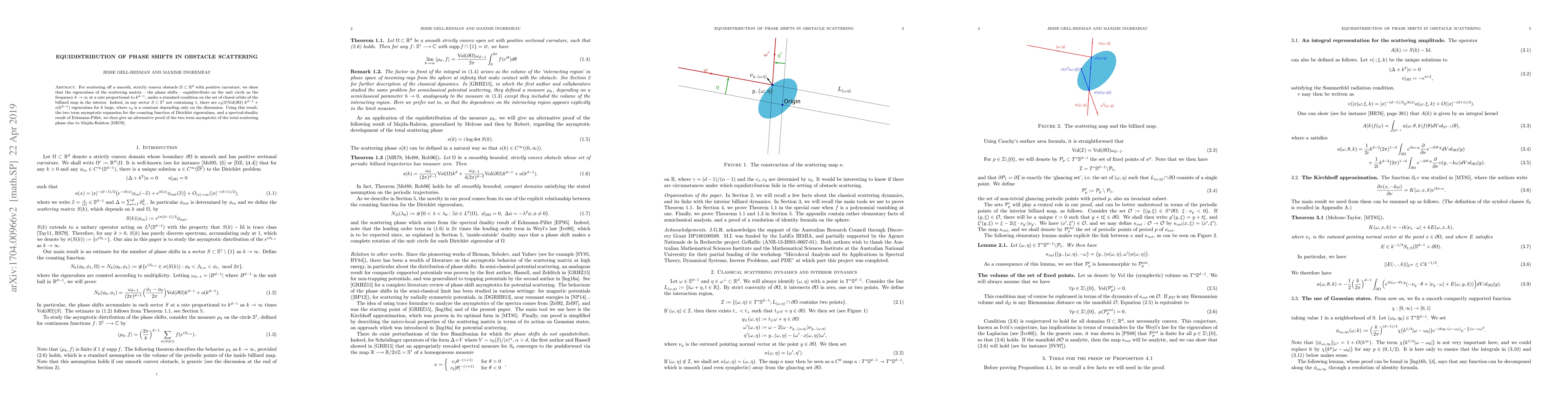 Research shows that as frequency in scattering off a convex obstacle increases, phase shifts (eigenvalues of the scattering matrix) equidistribute on the unit circle at a rate proportional to k^(d-1), where d is the dimension of the space.