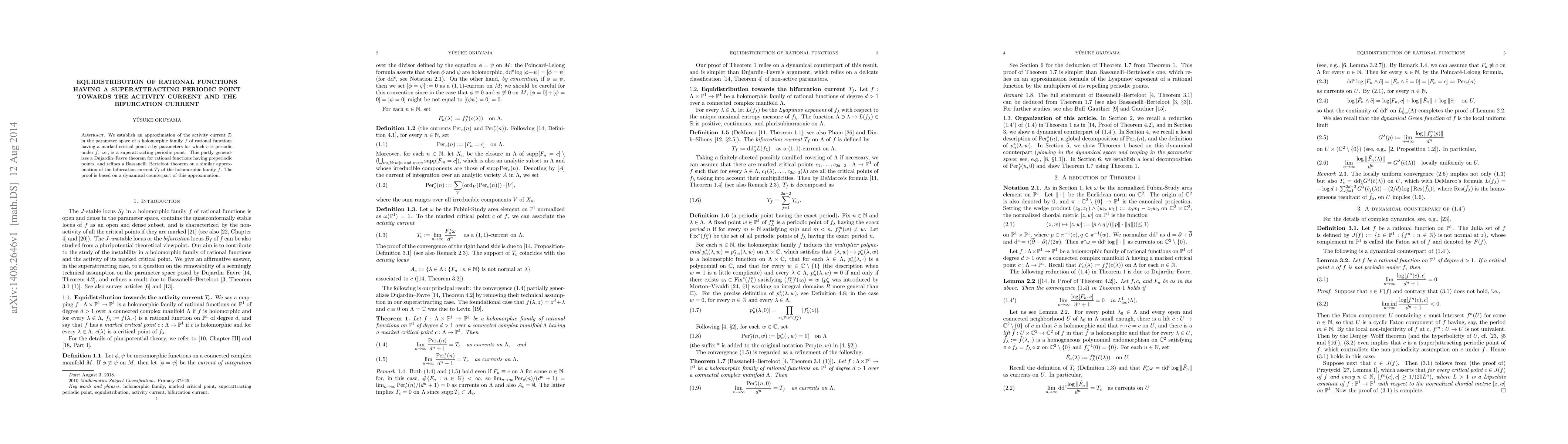 We establish an approximation of the activity current $T_c$ in the parameter space of a holomorphic family $f$ of rational functions having a marked critical point $c$ by parameters for which $c$ is periodic under $f$, i.e., is a superattracting periodic point. This partly generalizes a Dujardin--Favre theorem for rational functions having preperiodic points, and refines a Bassanelli--Berteloot theorem on a similar approximation of the bifurcation current $T_f$ of the holomorphic family $f$. The proof is based on a dynamical counterpart of this approximation.