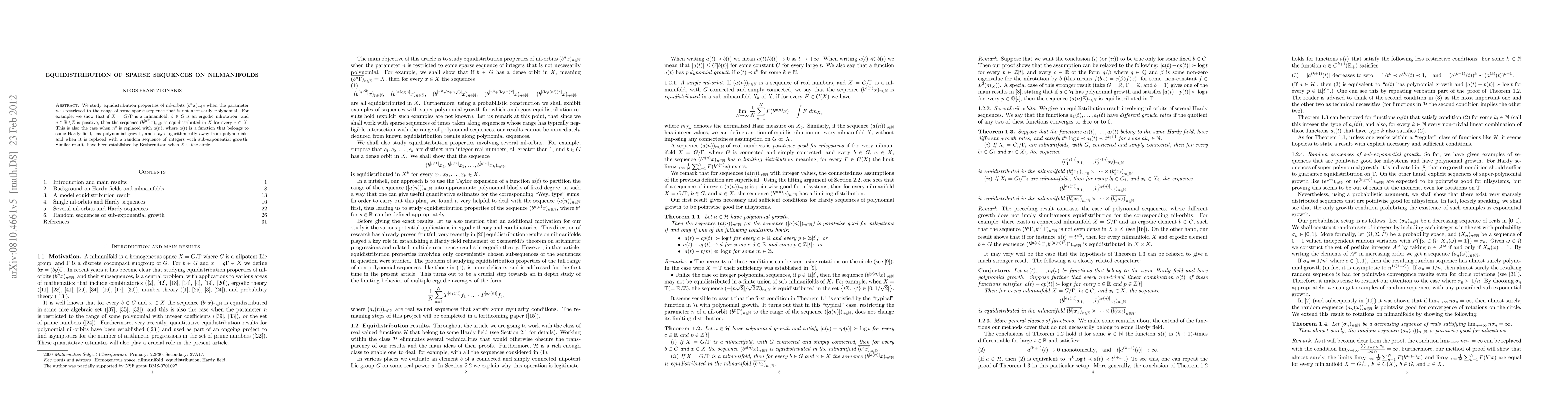 Research shows that certain types of sparse sequences on nilmanifolds exhibit equidistribution properties, even when the sequence is not polynomial.