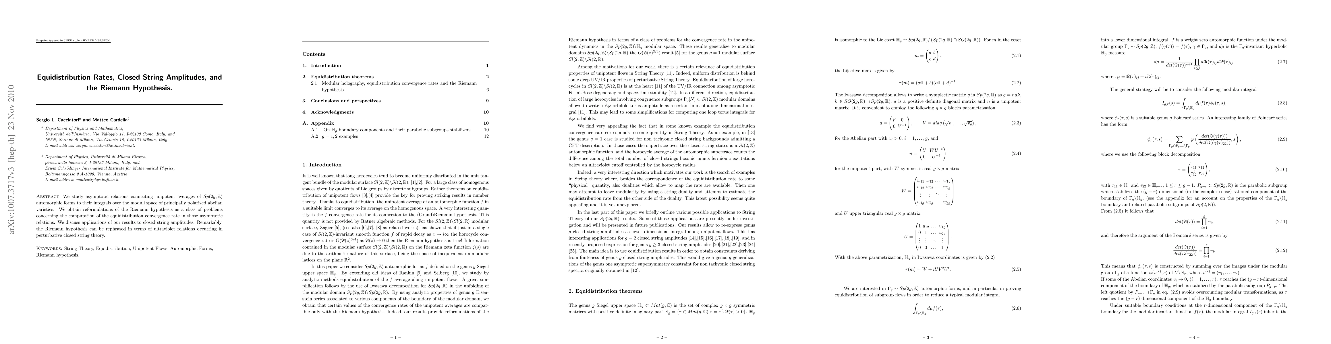 We study asymptotic relations connecting unipotent averages of $Sp(2g,\mathbb{Z})$ automorphic forms to their integrals over the moduli space of principally polarized abelian varieties. We obtain reformulations of the Riemann hypothesis as a class of problems concerning the computation of the equidistribution convergence rate in those asymptotic relations. We discuss applications of our results to closed string amplitudes. Remarkably, the Riemann hypothesis can be rephrased in terms of ultraviolet relations occurring in perturbative closed string theory.