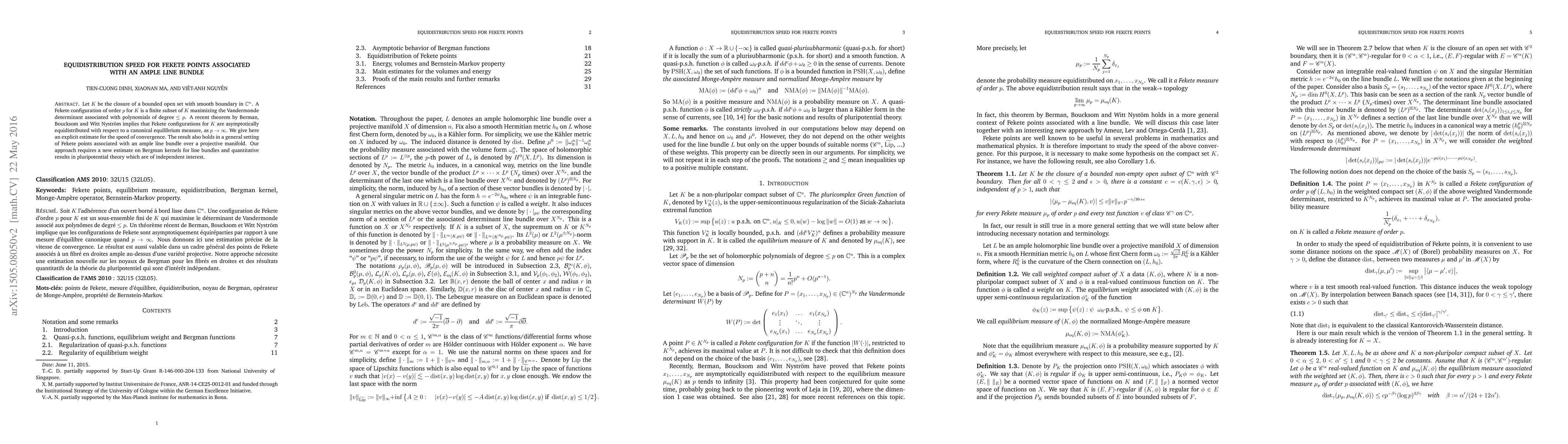 Researchers have found that Fekete points, used to optimize polynomial functions, converge at a specific speed as the number of points increases, with an explicit estimate provided for their distribution over complex manifolds.