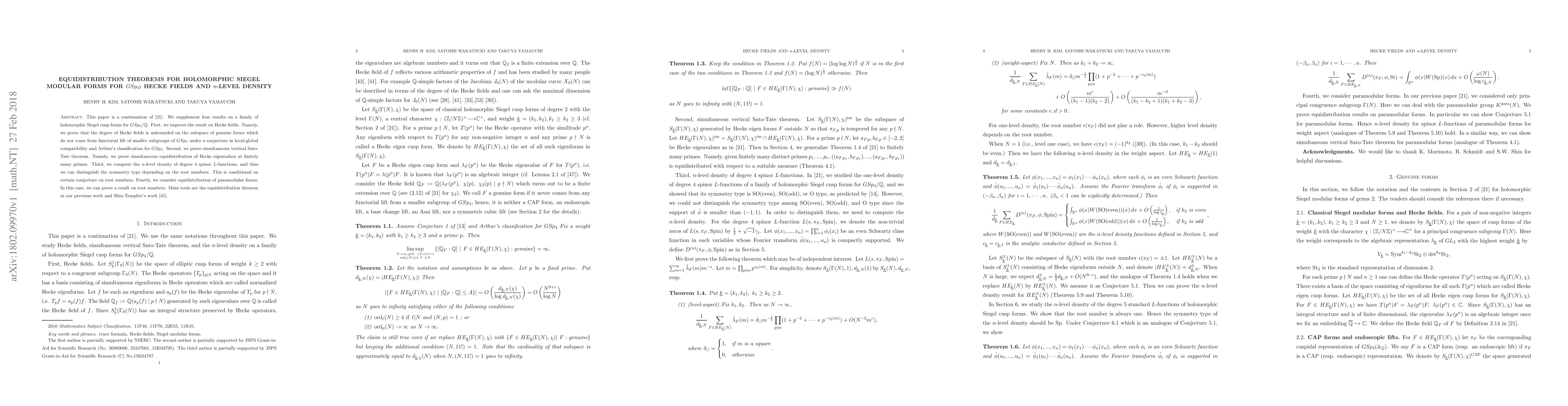 This paper enhances results on holomorphic Siegel cusp forms for $GSp_4/\mathbb{Q}$, showing that the degree of Hecke fields is unbounded for genuine forms under certain conjectures. It also proves a simultaneous vertical Sato-Tate theorem and computes $n$-level density for degree 4 spinor $L$-functions, conditional on root number conjectures.