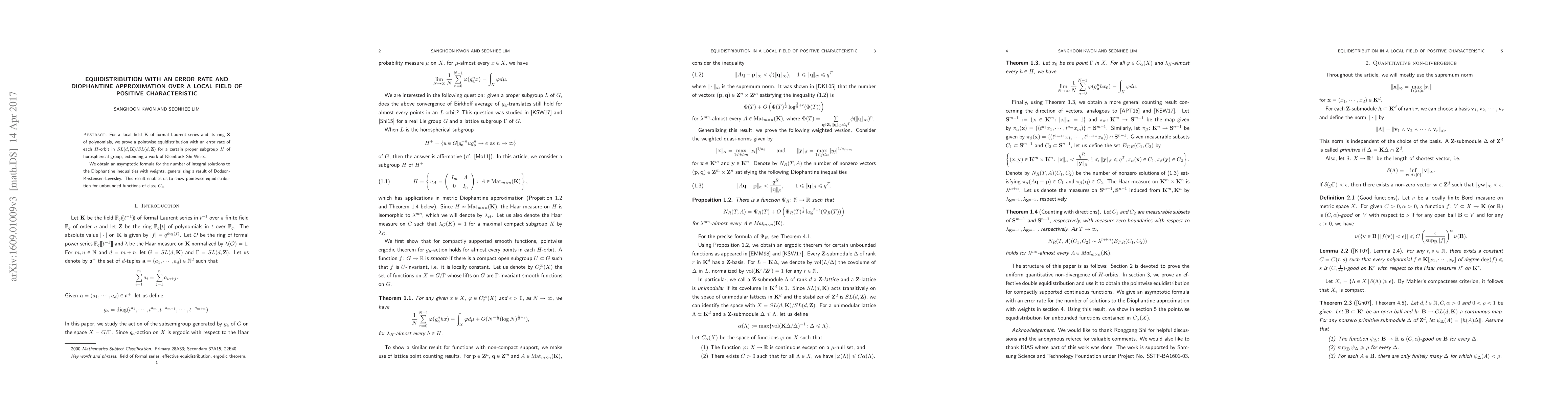 We prove pointwise equidistribution with an error rate of each $H$-orbit in $SL(d,\mathbf{K})/SL(d,\mathbf{Z})$ for a certain proper subgroup $H$ of horospherical group over a function field $\mathbf{K}$, extending a work of Kleinbock-Shi-Weiss. Moreover, we obtain an asymptotic formula for the number of integral solutions to the Diophantine inequalities with weights, generalizing a result of Dodson-Kristensen-Levesley. This result enables us to show pointwise equidistribution for unbounded functions of class $C_\alpha$, which was first introduced by Eskin-Margulis-Mozes.