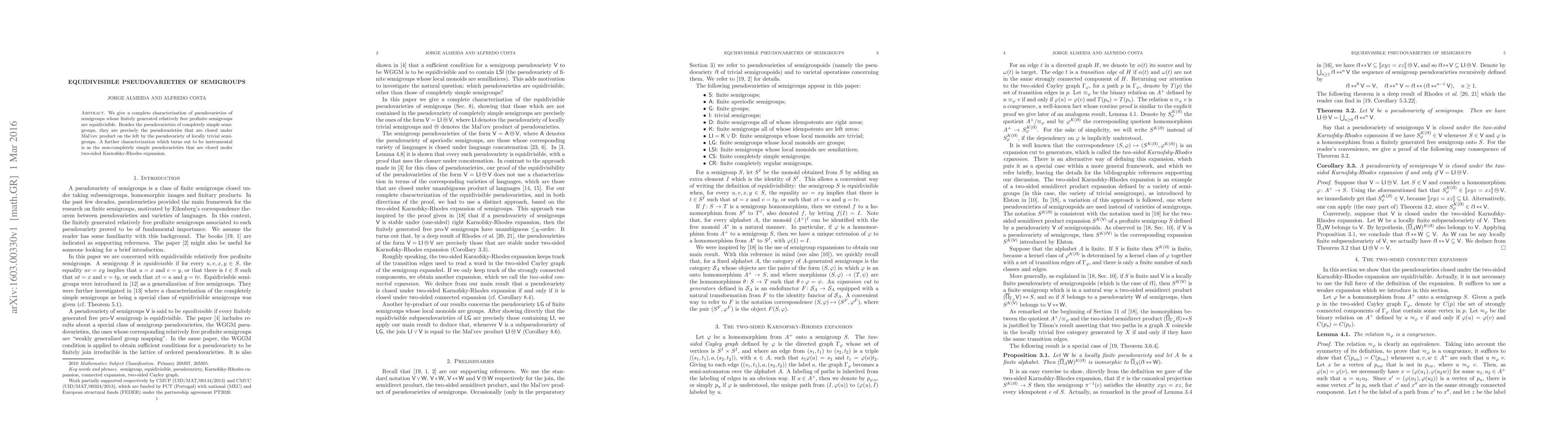 We give a complete characterization of pseudovarieties of semigroups whose finitely generated relatively free profinite semigroups are equidivisible. Besides the pseudovarieties of completely simple semigroups, they are precisely the pseudovarieties that are closed under Mal'cev product on the left by the pseudovariety of locally trivial semigroups. A further characterization which turns out to be instrumental is as the non-completely simple pseudovarieties that are closed under two-sided Karnofsky-Rhodes expansion.