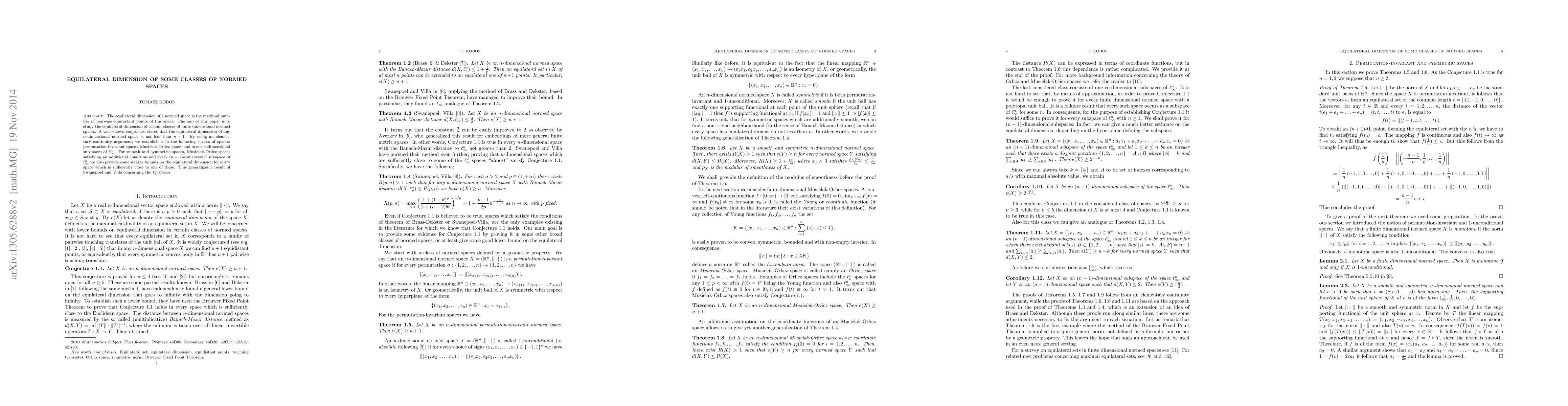 This paper investigates the equilateral dimension of specific classes of finite-dimensional normed spaces, proving that the maximal number of equidistant points in these spaces is at least $n+1$ for permutation-invariant, Orlicz-Musielak, and certain $\ell^n_{\infty}$ subspaces. It also provides weaker bounds for smooth, symmetric spaces and specific $\ell^n_{\infty}$ subspaces.