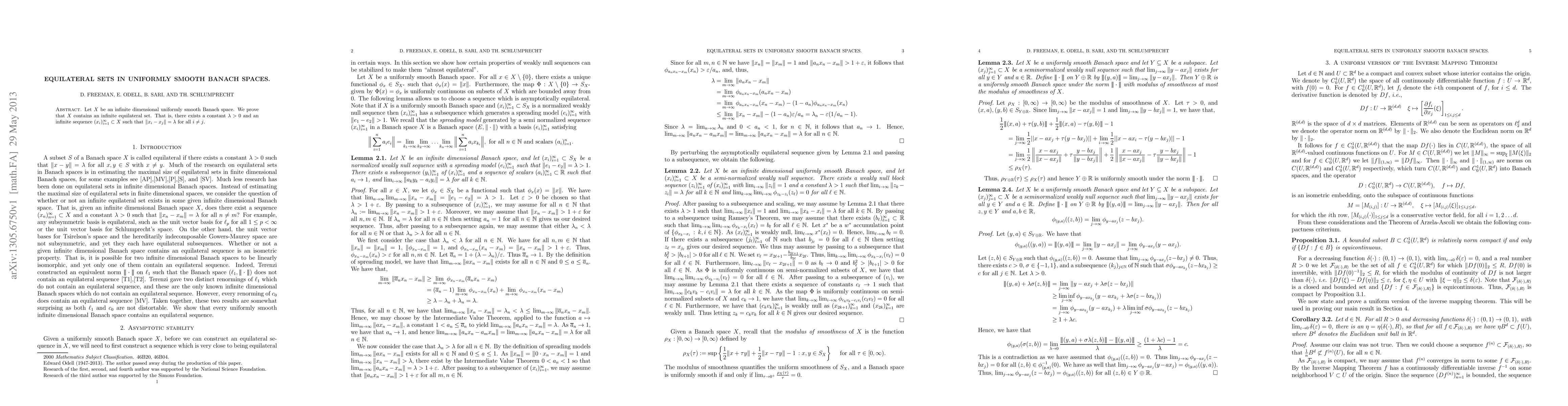 This paper proves that any infinite-dimensional uniformly smooth Banach space $X$ contains an infinite equilateral set, meaning there exists a sequence of points in $X$ with equal pairwise distances greater than zero. This result highlights a geometric property of uniformly smooth Banach spaces.