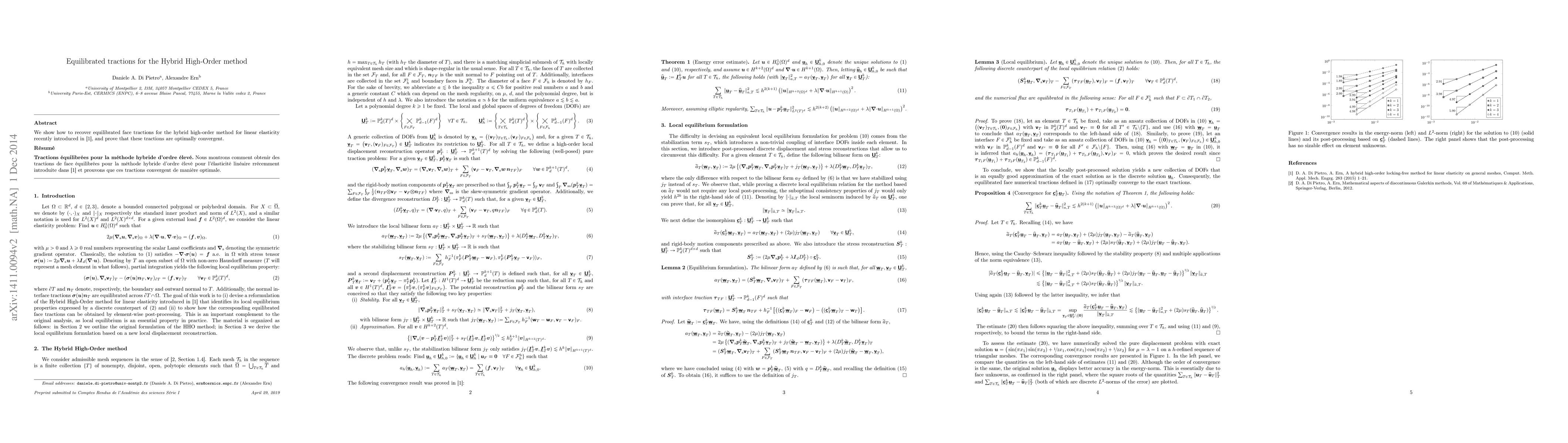 Researchers developed a method to calculate equilibrated tractions for a specific numerical technique used in linear elasticity problems, showing optimal convergence.