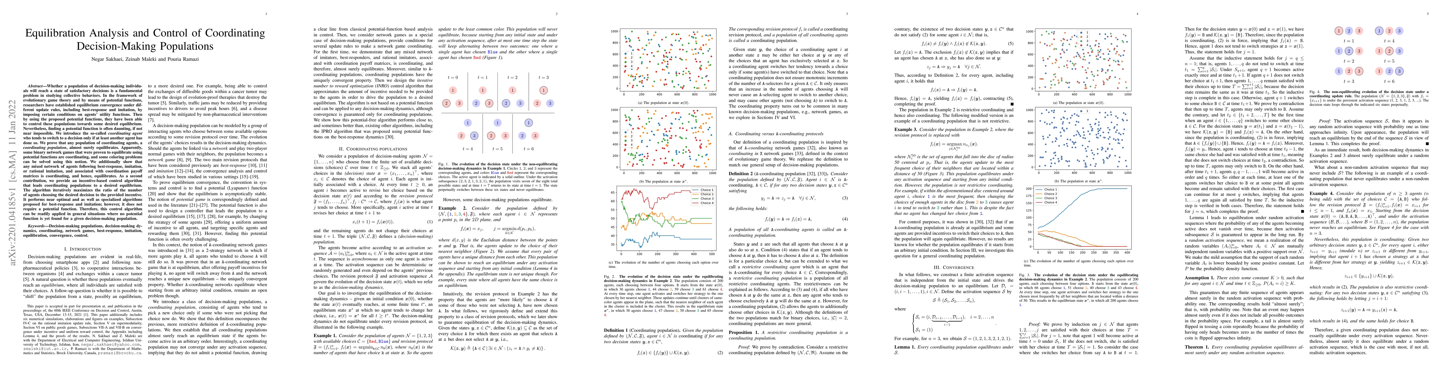 This paper explores the equilibration of populations of coordinating decision-making agents, proving that such populations almost surely reach a satisfactory state of decisions. It introduces an incentive-based control algorithm that guides these populations to a desired equilibrium without requiring a potential function, offering a practical approach applicable in general scenarios.