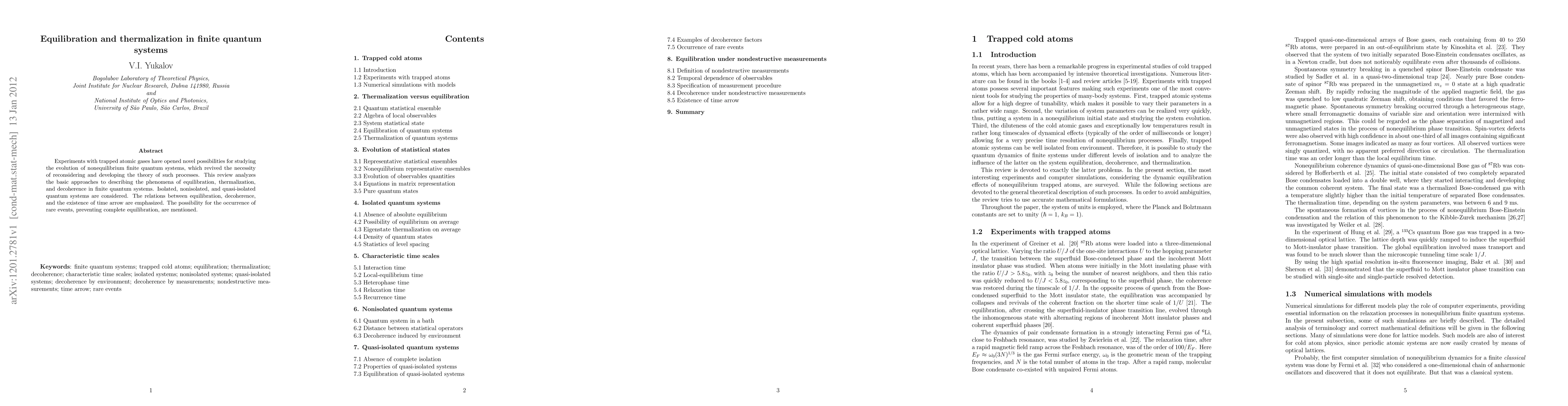 Experiments with trapped atomic gases have opened novel possibilities for studying the evolution of nonequilibrium finite quantum systems, which revived the necessity of reconsidering and developing the theory of such processes. This review analyzes the basic approaches to describing the phenomena of equilibration, thermalization, and decoherence in finite quantum systems. Isolated, nonisolated, and quasi-isolated quantum systems are considered. The relations between equilibration, decoherence, and the existence of time arrow are emphasized. The possibility for the occurrence of rare events, preventing complete equilibration, are mentioned.
