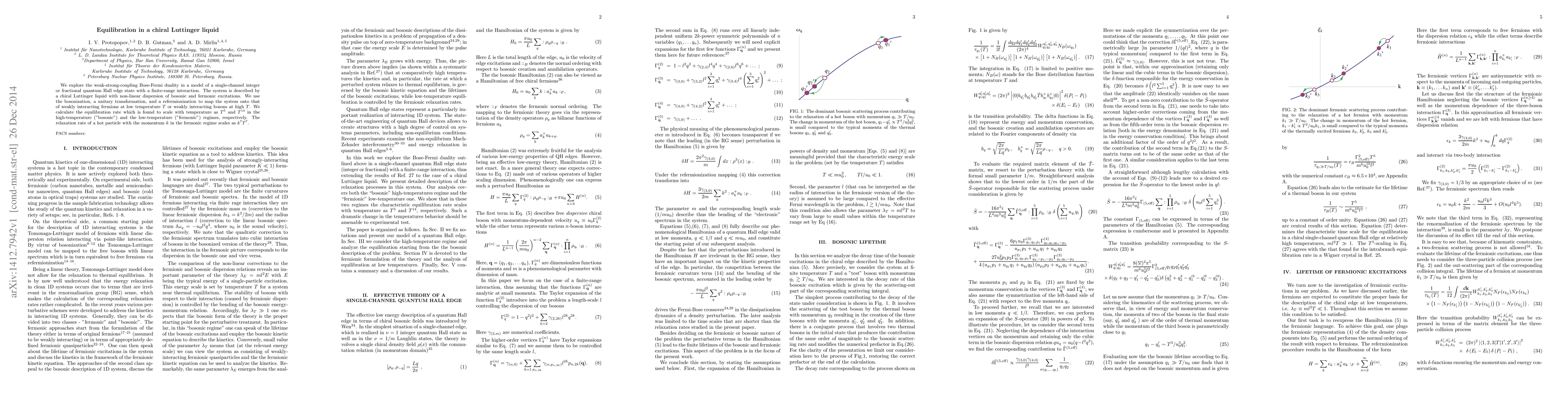 We explore the weak-strong-coupling Bose-Fermi duality in a model of a single-channel integer or fractional quantum Hall edge state with a finite-range interaction. The system is described by a chiral Luttinger liquid with non-linear dispersion of bosonic and fermonic excitations. We use the bosonization, a unitary transformation, and a refermionization to map the system onto that of weakly interacting fermions at low temperature $T$ or weakly interacting bosons at high $T$. We calculate the equilibration rate which is found to scale with temperature as $T^5$ and $T^{14}$ in the high-temperature ("bosonic") and the low-temperature ("fermonic") regimes, respectively. The relaxation rate of a hot particle with the momentum $k$ in the fermonic regime scales as $k^7T^7$.