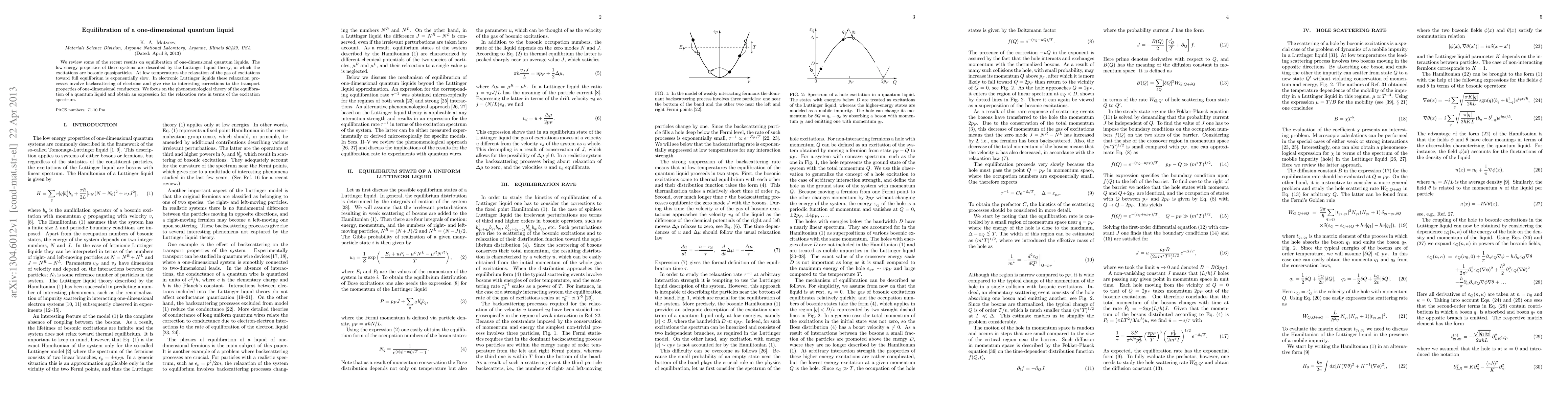 This paper reviews recent findings on the equilibration dynamics of one-dimensional quantum liquids, emphasizing the slow, exponential relaxation process described by Luttinger liquid theory. The study focuses on the phenomenological theory and derives an expression for the relaxation rate based on the excitation spectrum.