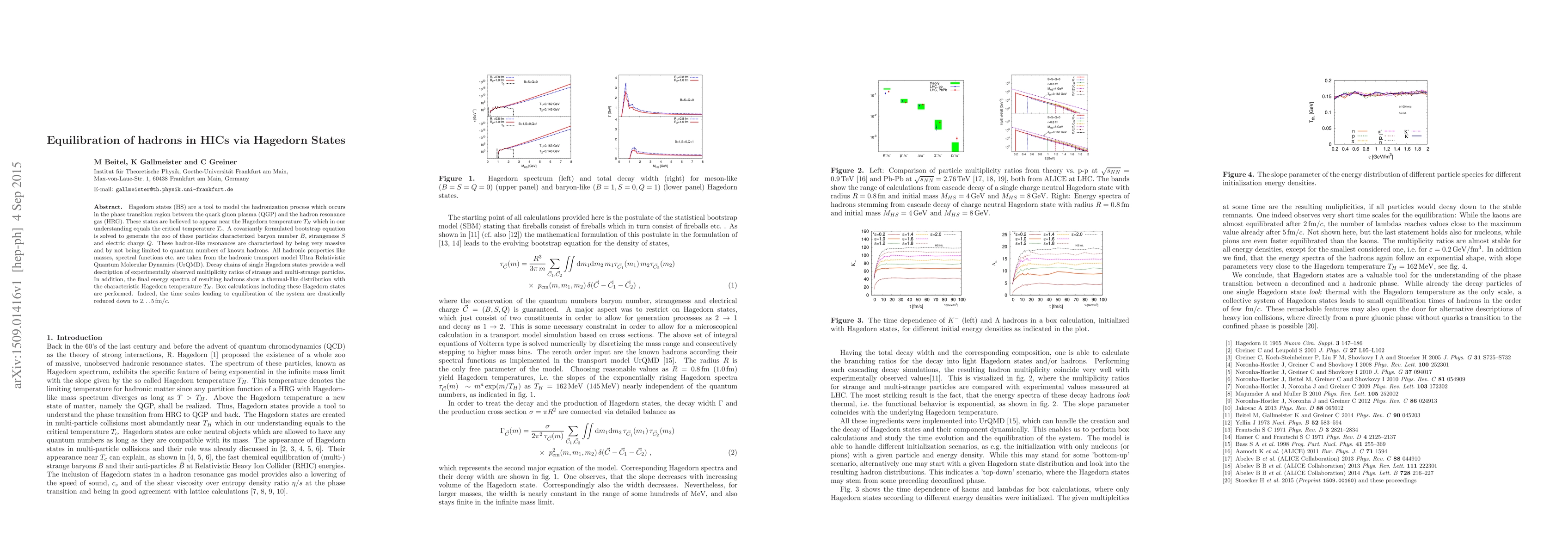 This paper investigates the equilibration of hadrons in heavy-ion collisions (HICs) through the modeling of Hagedorn states, which bridge the quark-gluon plasma to hadron resonance gas. The results show that incorporating Hagedorn states significantly reduces the time scales for system equilibration to 2...5 fm/c, aligning with experimental observations of particle multiplicity ratios.