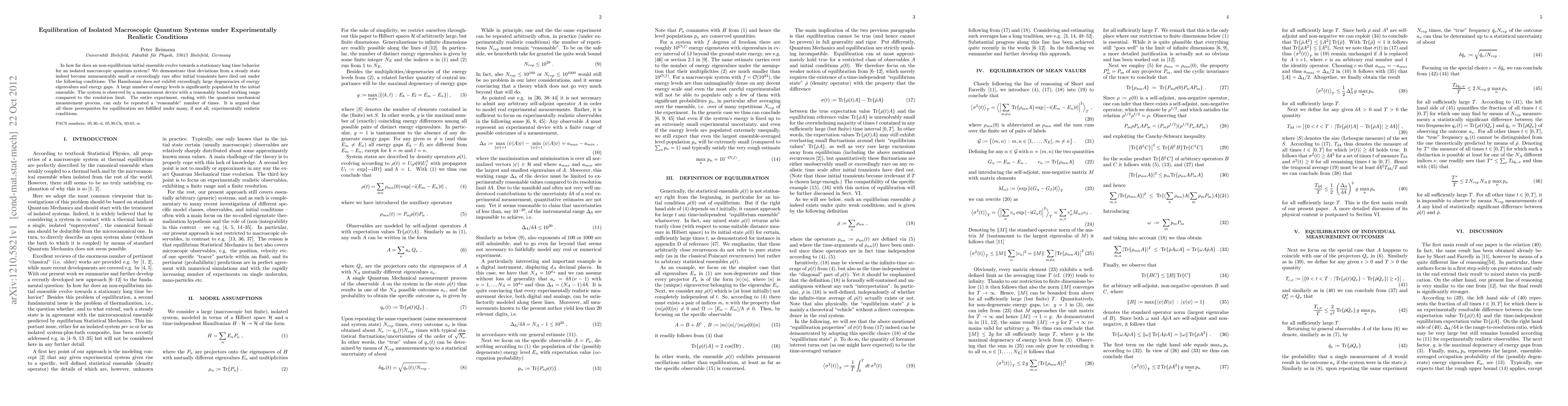 This paper investigates the equilibration of isolated macroscopic quantum systems to a steady state under realistic experimental conditions. It concludes that systems with a large number of populated energy levels and limited degeneracies, measured within a reasonable range, tend to reach a near-equilibrium state after initial transients.