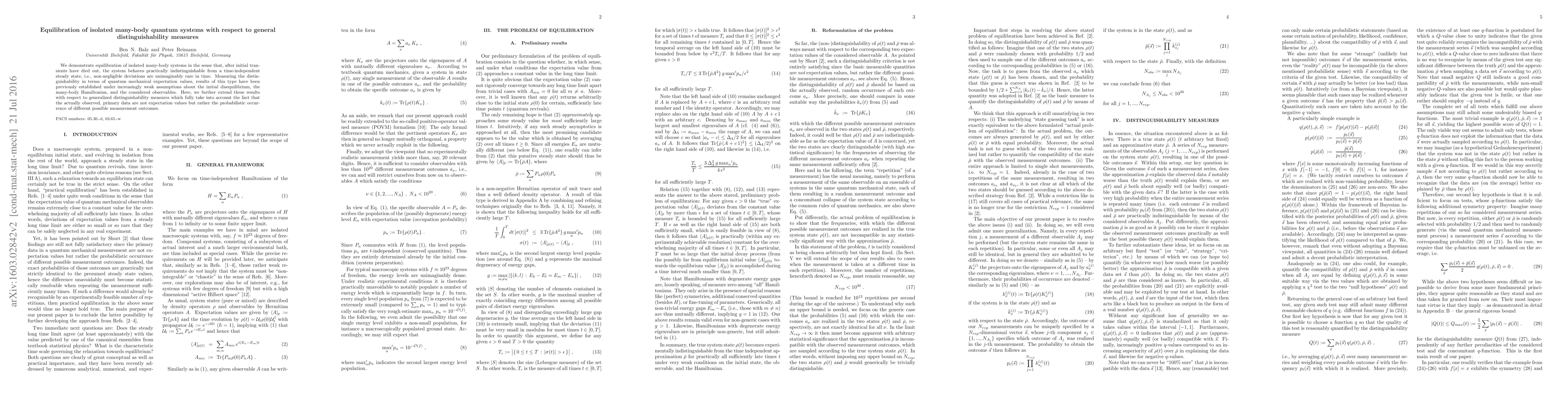 We demonstrate equilibration of isolated many-body systems in the sense that, after initial transients have died out, the system behaves practically indistinguishable from a time-independent steady state, i.e., non-negligible deviations are unimaginably rare in time. Measuring the distinguishability in terms of quantum mechanical expectation values, results of this type have been previously established under increasingly weak assumptions about the initial disequilibrium, the many-body Hamiltonian, and the considered observables. Here, we further extend these results with respect to generalized distinguishability measures which fully take into account the fact that the actually observed, primary data are not expectation values but rather the probabilistic occurrence of different possible measurement outcomes.