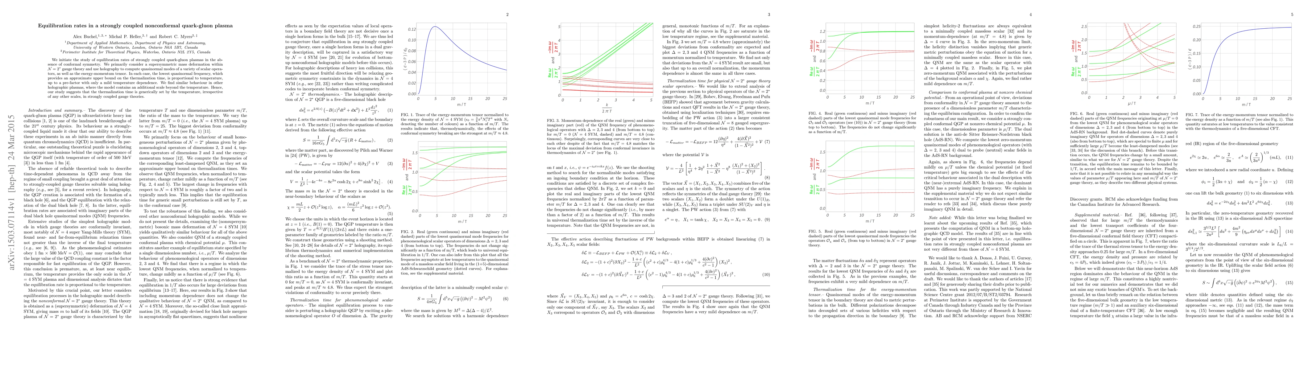 We initiate the study of equilibration rates of strongly coupled quark-gluon plasmas in the absence of conformal symmetry. We primarily consider a supersymmetric mass deformation within ${\cal N}=2^{*}$ gauge theory and use holography to compute quasinormal modes of a variety of scalar operators, as well as the energy-momentum tensor. In each case, the lowest quasinormal frequency, which provides an approximate upper bound on the thermalization time, is proportional to temperature, up to a pre-factor with only a mild temperature dependence. We find similar behaviour in other holographic plasmas, where the model contains an additional scale beyond the temperature. Hence, our study suggests that the thermalization time is generically set by the temperature, irrespective of any other scales, in strongly coupled gauge theories.