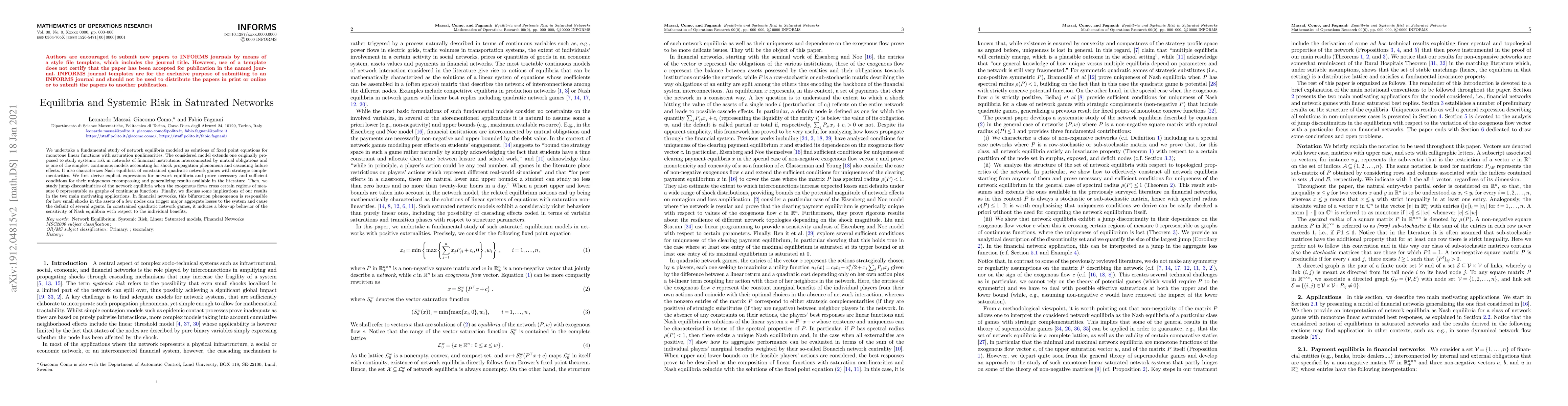 We undertake a fundamental study of network equilibria modeled as solutions of fixed point equations for monotone linear functions with saturation nonlinearities. The considered model extends one originally proposed to study systemic risk in networks of financial institutions interconnected by mutual obligations and is one of the simplest continuous models accounting for shock propagation phenomena and cascading failure effects. It also characterizes Nash equilibria of constrained quadratic network games with strategic complementarities. We first derive explicit expressions for network equilibria and prove necessary and sufficient conditions for their uniqueness encompassing and generalizing results available in the literature. Then, we study jump discontinuities of the network equilibria when the exogenous flows cross certain regions of measure 0 representable as graphs of continuous functions. Finally, we discuss some implications of our results in the two main motivating applications. In financial networks, this bifurcation phenomenon is responsible for how small shocks in the assets of a few nodes can trigger major aggregate losses to the system and cause the default of several agents. In constrained quadratic network games, it induces a blow-up behavior of the sensitivity of Nash equilibria with respect to the individual benefits.