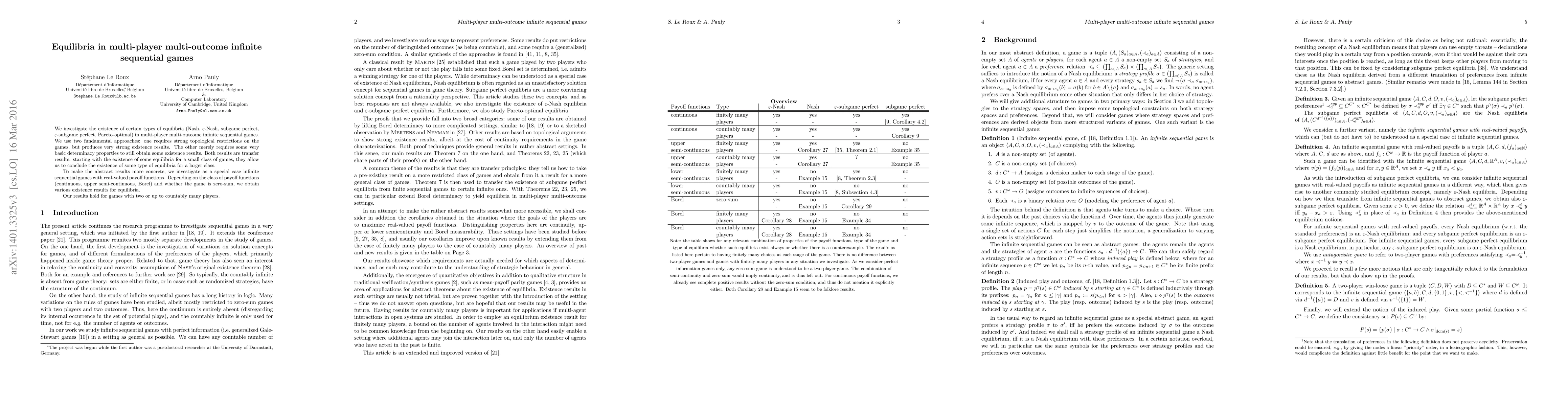 This paper explores the existence of various types of equilibria in multi-player infinite sequential games, employing two distinct approaches to derive strong and basic existence results. Special cases with real-valued payoff functions and different continuity properties yield specific equilibrium existence results.