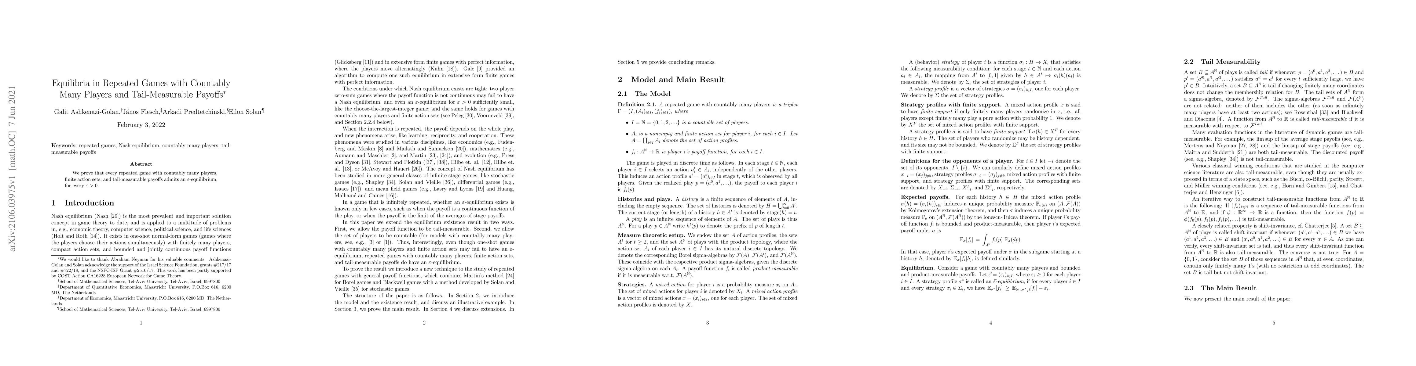 We prove that every repeated game with countably many players, finite action sets, and tail-measurable payoffs admits an $\epsilon$-equilibrium, for every $\epsilon > 0$.