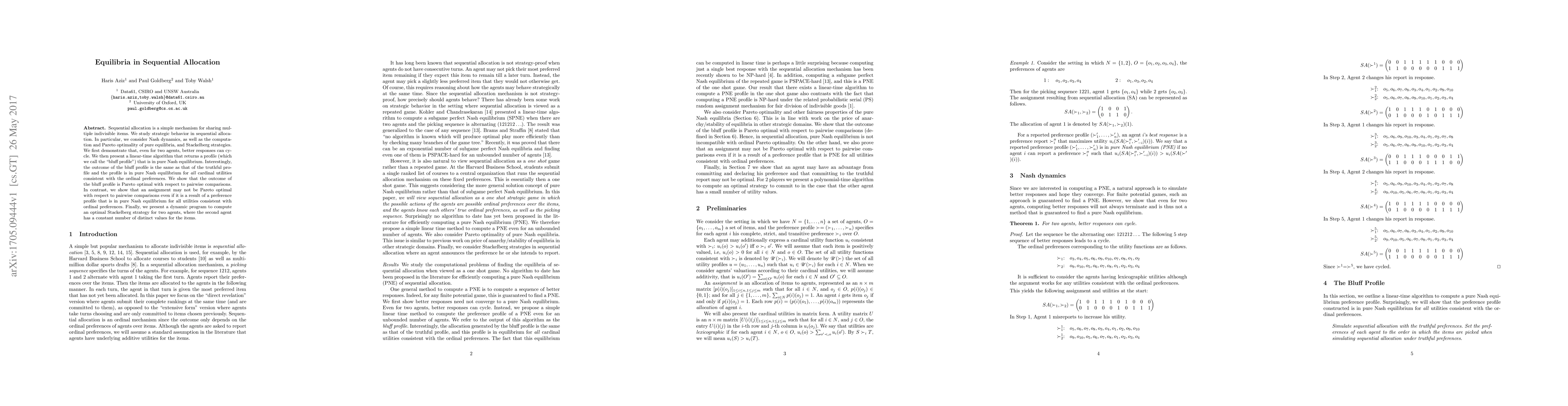 This paper investigates strategic behavior in sequential allocation mechanisms, focusing on Nash equilibria and Stackelberg strategies. It demonstrates cycling in better responses and presents a linear-time algorithm for finding a "bluff profile" that is a pure Nash equilibrium and Pareto optimal, while also showing that not all pure Nash equilibria are Pareto optimal. Additionally, it provides a dynamic program for computing optimal Stackelberg strategies for two agents.