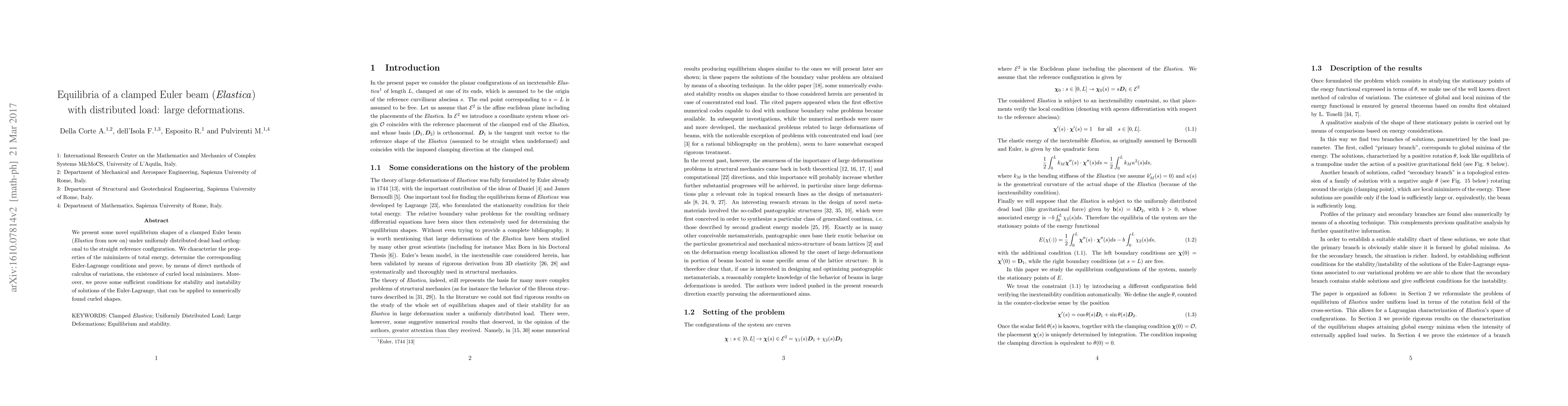 Researchers studied the equilibrium shapes of a clamped Euler beam under uniform distributed dead load, finding novel curved shapes that minimize total energy and proving their existence through calculus of variations.