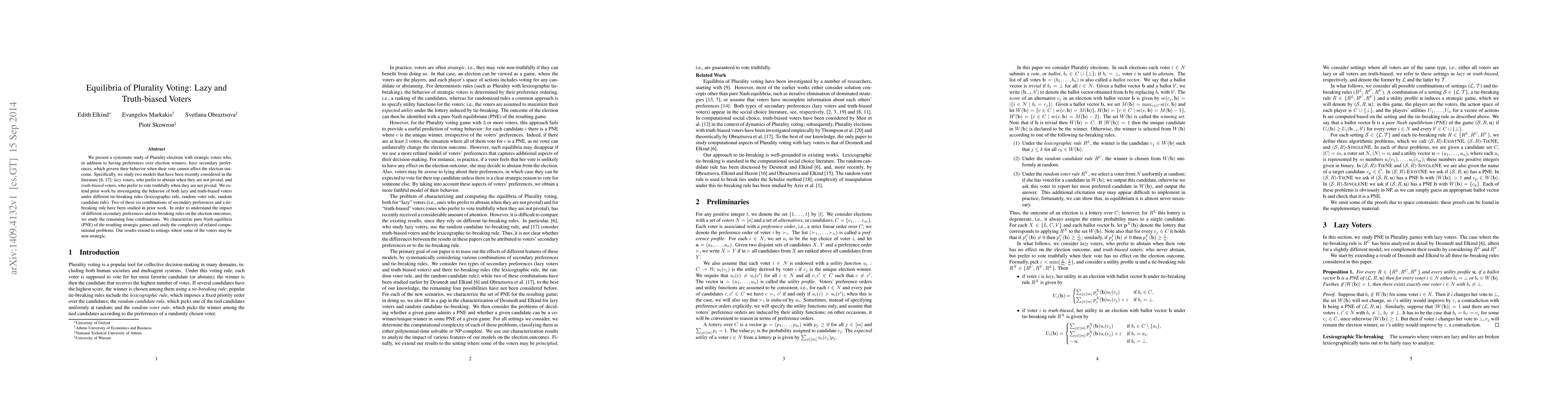 This paper systematically examines Plurality voting scenarios with strategic voters who either prefer to abstain when non-pivotal (lazy voters) or vote truthfully when non-pivotal (truth-biased voters). It explores the pure Nash equilibria under various tie-breaking rules and extends prior research by analyzing four previously unstudied combinations.