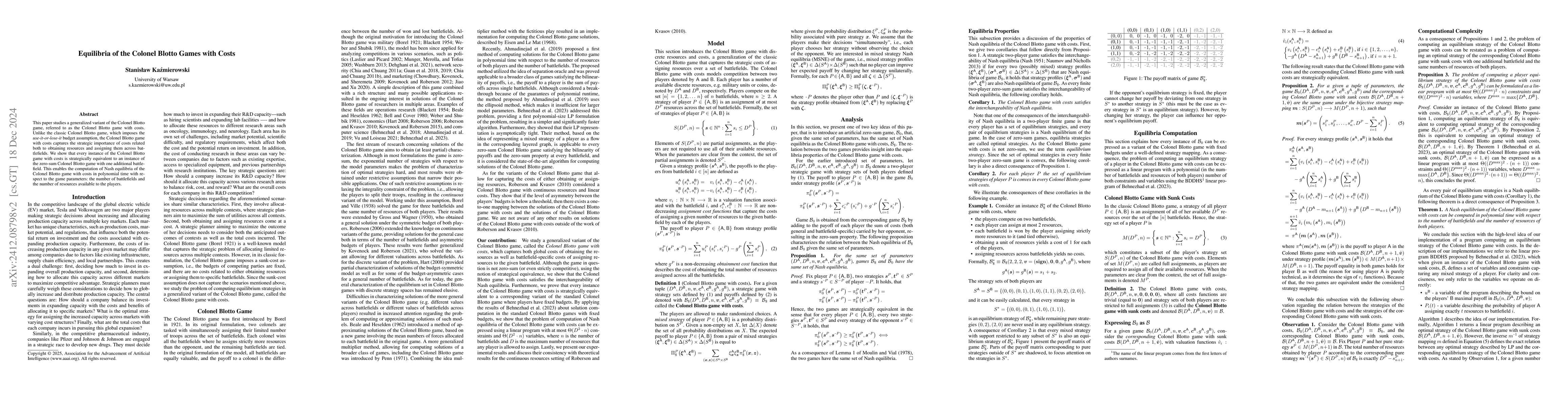 This paper explores a variant of the Colonel Blotto game that incorporates resource costs, demonstrating its strategic equivalence to a zero-sum game with an extra battlefield, thus enabling polynomial-time computation of Nash equilibria.