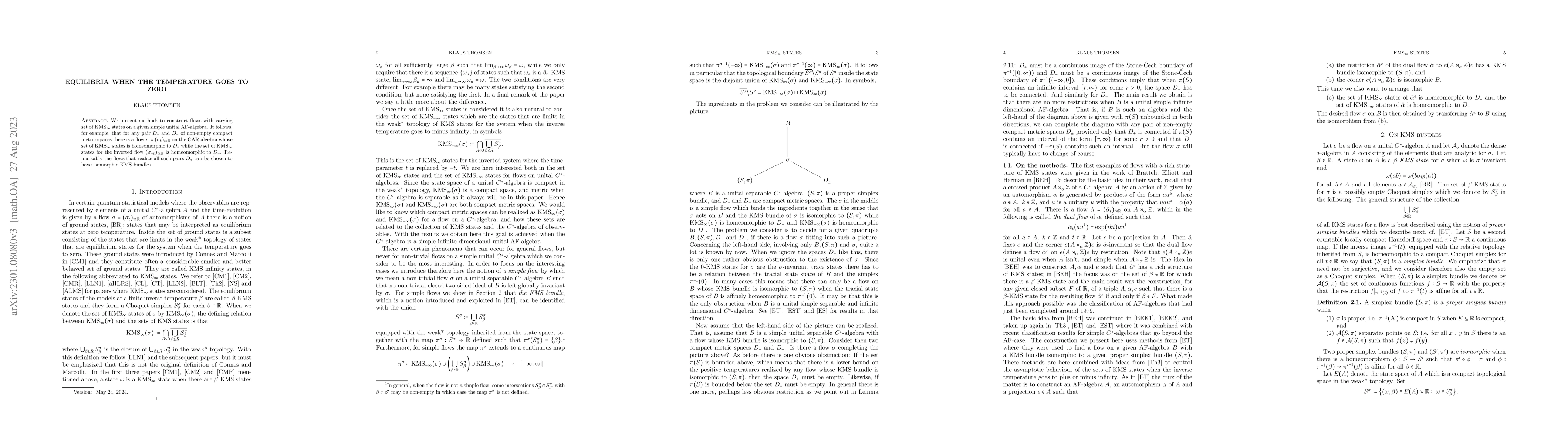 We present methods to construct flows with varying sets of KMS infinity states on a given simple unital AF-algebra. It follows, for example, that for any pair D and E of non-empty compact metric spaces there is a flow on the CAR algebra whose set of KMS infinity states is homeomorphic to D while the set of KMS infinity states for the inverted flow is homeomorphic to E. Remarkably the flows that realize all such pairs D and E can be chosen to have isomorphic KMS bundles.
