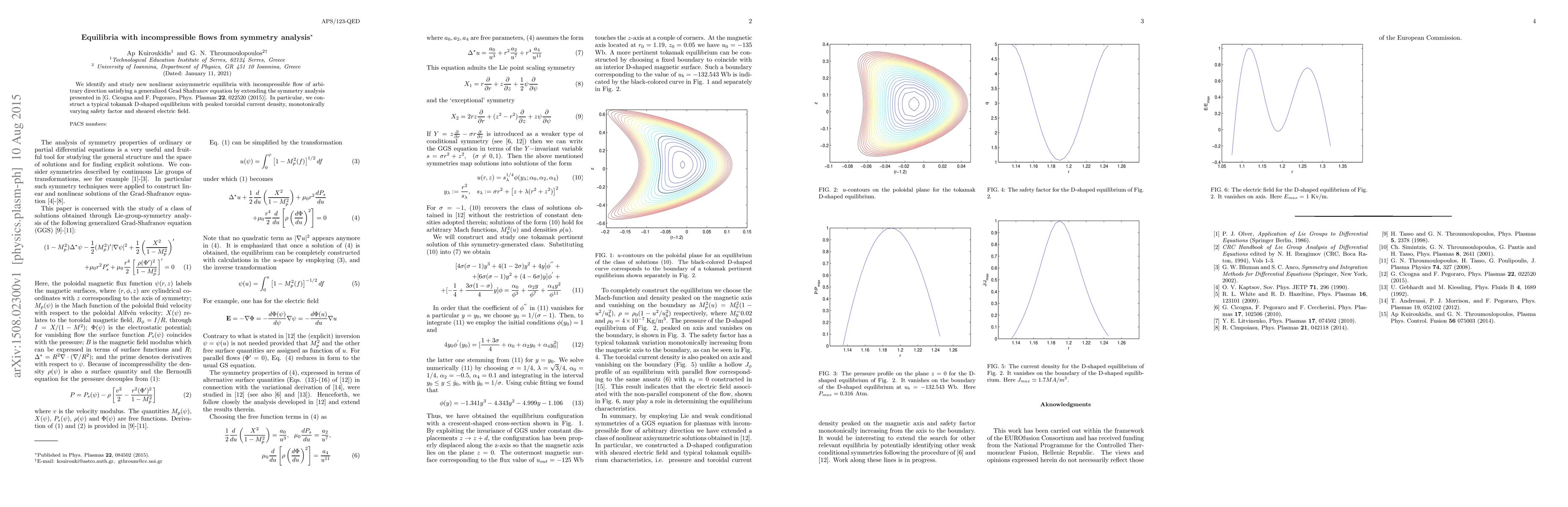 This paper extends symmetry analysis to identify new nonlinear axisymmetric equilibria for incompressible flows, constructing a D-shaped tokamak model with specific features like peaked toroidal current density and a sheared electric field. The study builds on the work of Cicogna and Pegoraro in 2015.