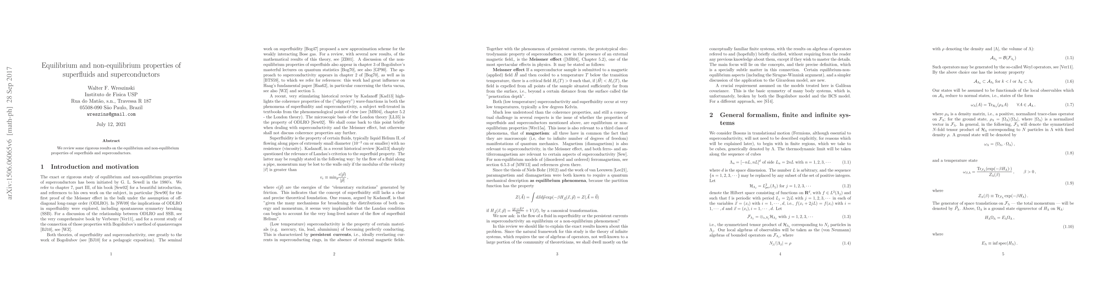 Summary: This paper reviews established theoretical results concerning the equilibrium and non-equilibrium behaviors of superfluids and superconductors, offering insights into their fundamental properties and dynamics.