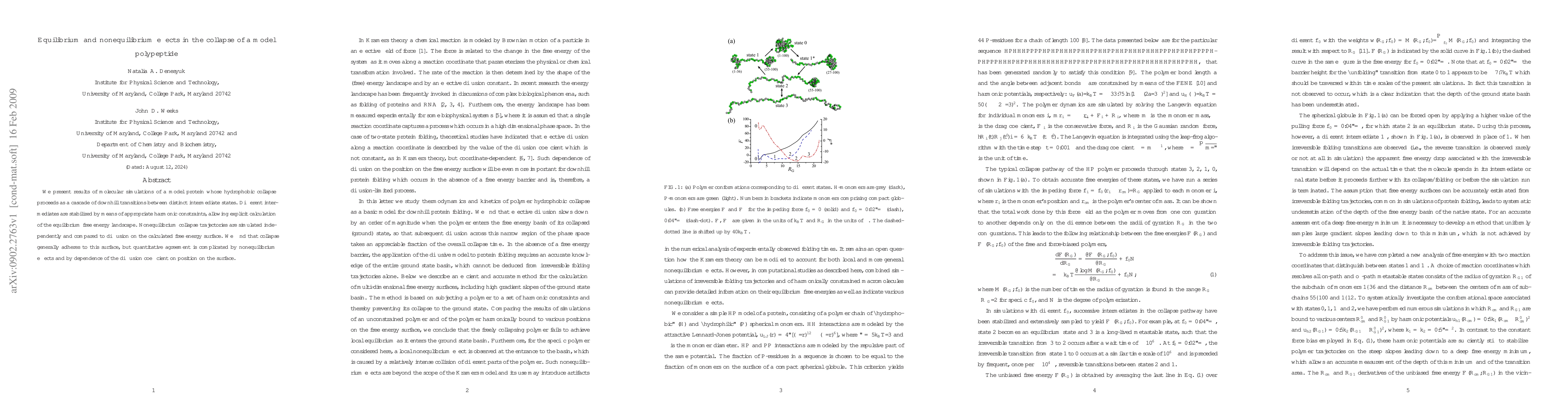 We present results of molecular simulations of a model protein whose hydrophobic collapse proceeds as a cascade of downhill transitions between distinct intermediate states. Different intermediates are stabilized by means of appropriate harmonic constraints, allowing explicit calculation of the equilibrium free energy landscape. Nonequilibrium collapse trajectories are simulated independently and compared to diffusion on the calculated free energy surface. We find that collapse generally adheres to this surface, but quantitative agreement is complicated by nonequilibrium effects and by dependence of the diffusion coefficient on position on the surface.