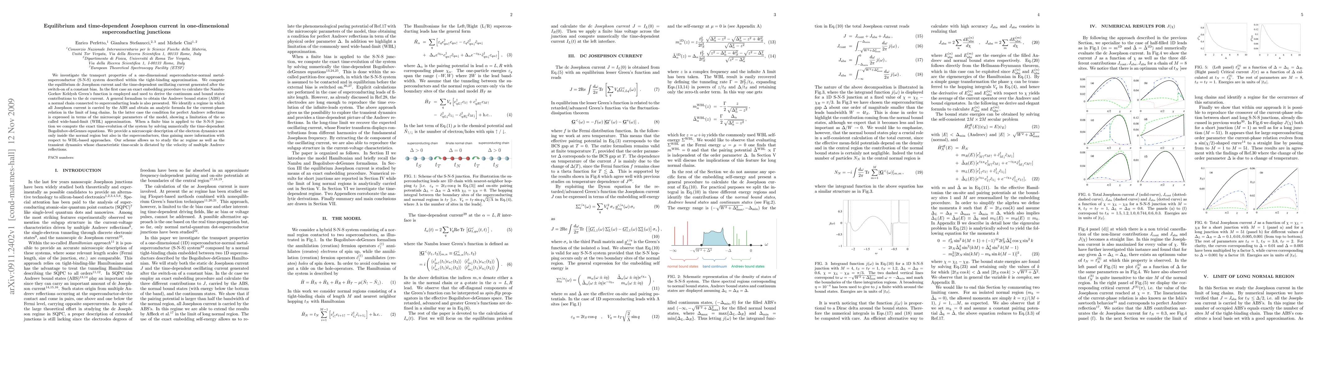 We investigate the transport properties of a one-dimensional superconductor-normal metal-superconductor (S-N-S) system described within the tight-binding approximation. We compute the equilibrium dc Josephson current and the time-dependent oscillating current generated after the switch-on of a constant bias. In the first case an exact embedding procedure to calculate the Nambu-Gorkov Keldysh Green's function is employed and used to derive the continuum and bound states contributions to the dc current. A general formalism to obtain the Andreev bound states (ABS) of a normal chain connected to superconducting leads is also presented. We identify a regime in which all Josephson current is carried by the ABS and obtain an analytic formula for the current-phase relation in the limit of long chains. In the latter case the condition for perfect Andreev reflections is expressed in terms of the microscopic parameters of the model, showing a limitation of the so called wide-band-limit (WBL) approximation. When a finite bias is applied to the S-N-S junction we compute the exact time-evolution of the system by solving numerically the time-dependent Bogoliubov-deGennes equations. We provide a microscopic description of the electron dynamics not only inside the normal region but also in the superconductors, thus gaining more information with respect to WBL-based approaches. Our scheme allows us to study the ac regime as well as the transient dynamics whose characteristic time-scale is dictated by the velocity of multiple Andreev reflections.