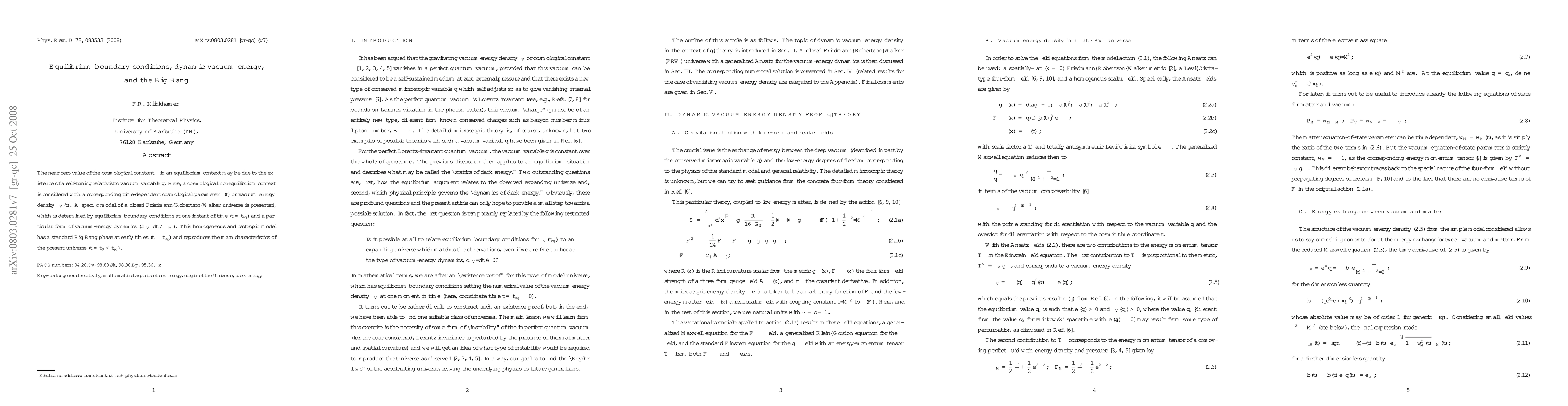This paper proposes a model for a closed Friedmann-Robertson-Walker universe where equilibrium boundary conditions and dynamic vacuum energy determine a time-dependent cosmological constant, leading to a standard Big Bang and the present universe's characteristics. The model suggests a self-tuning relativistic vacuum variable that explains the near-zero cosmological constant.