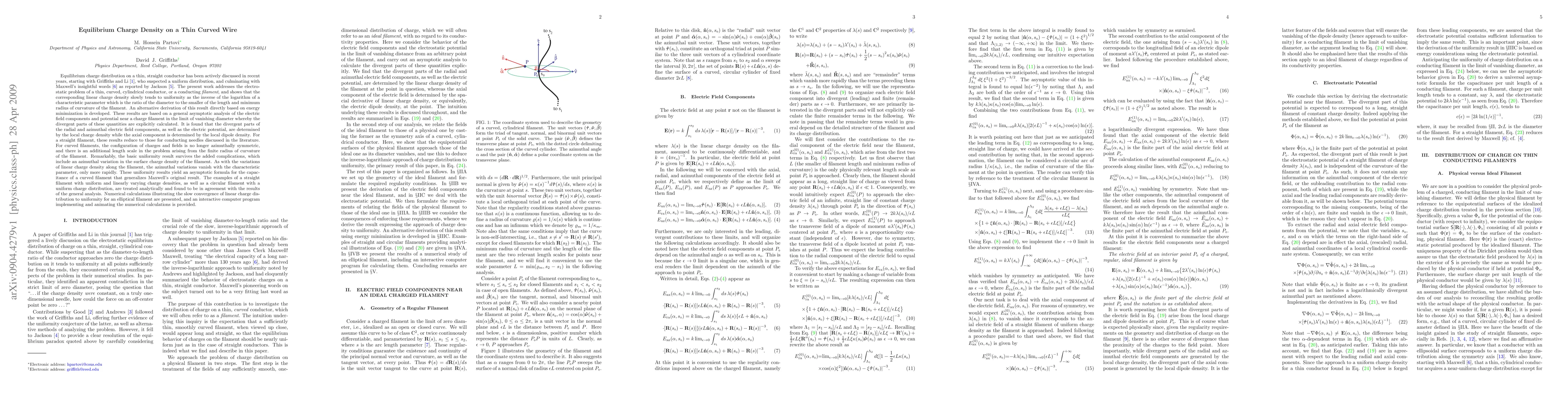 This work addresses the electrostatic problem of a thin, curved, cylindrical conductor, or a conducting filament, and shows that the corresponding linear charge density slowly tends to uniformity as the inverse of the logarithm of a characteristic parameter. An alternative derivation of this result directly based on energy minimization is developed. These results are based on a general asymptotic analysis of the electric field components and potential near a charge filament in the limit of vanishing diameter. It is found that the divergent parts of the radial and azimuthal electric field components, as well as the electric potential, are determined by the local charge density while the axial component is determined by the local dipole density. For a straight filament, these results reduce to those for conducting needles discussed in the literature. For curved filaments, there is an additional length scale in the problem arising from the finite radius of curvature of the filament. Remarkably, the basic uniformity result survives the added complications, which include an azimuthal variation in the surface charge density of the filament. These uniformity results yield an asymptotic formula for the capacitance of a curved filament that generalizes Maxwell's original result. The examples of a straight filament with uniform and linearly varying charge densities, as well as a circular filament with a uniform charge distribution, are treated analytically and found to be in agreement with the results of the general analysis. Numerical calculations illustrating the slow convergence of linear charge distribution to uniformity for an elliptical filament are presented, and an interactive computer program implementing and animating the numerical calculations is provided.