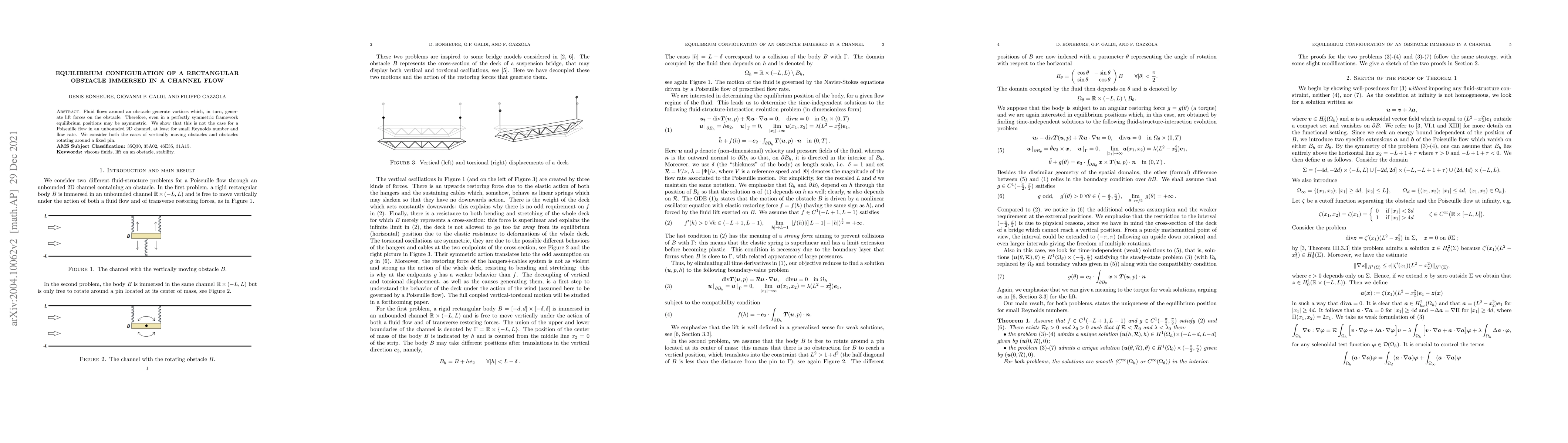 Researchers studied fluid flow around a rectangular obstacle in a 2D channel and found that equilibrium positions remain symmetric for low Reynolds numbers and flow rates.