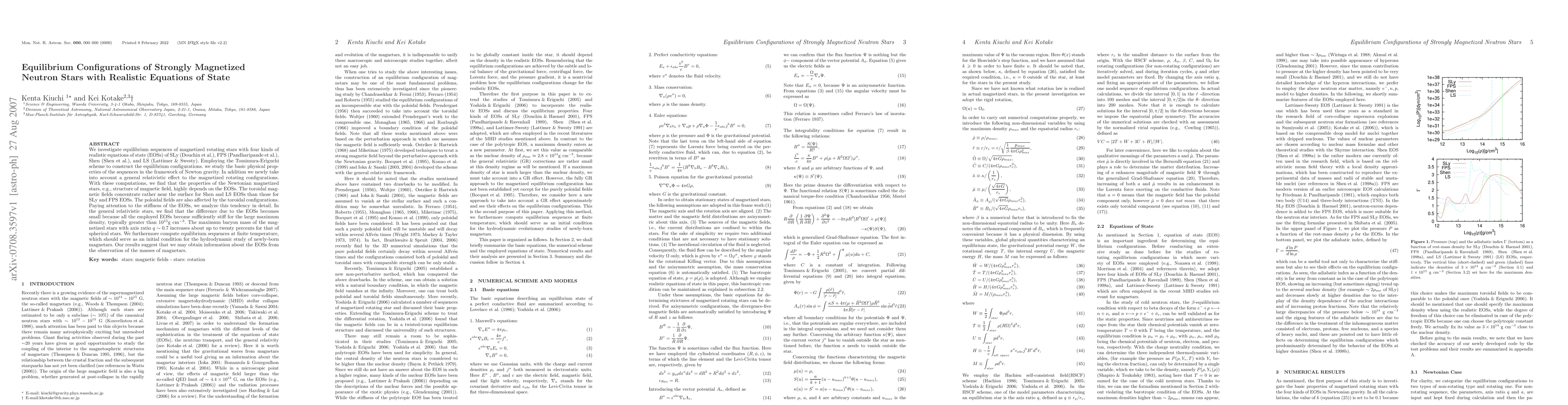 We investigate equilibrium sequences of magnetized rotating stars with four kinds of realistic equations of state (EOSs) of SLy (Douchin et al.), FPS (Pandharipande et al.), Shen (Shen et al.), and LS (Lattimer & Swesty). Employing the Tomimura-Eriguchi scheme to construct the equilibrium configurations. we study the basic physical properties of the sequences in the framework of Newton gravity. In addition we newly take into account a general relativistic effect to the magnetized rotating configurations. With these computations, we find that the properties of the Newtonian magnetized stars, e.g., structure of magnetic field, highly depends on the EOSs. The toroidal magnetic fields concentrate rather near the surface for Shen and LS EOSs than those for SLy and FPS EOSs. The poloidal fields are also affected by the toroidal configurations. Paying attention to the stiffness of the EOSs, we analyze this tendency in detail. In the general relativistic stars, we find that the difference due to the EOSs becomes small because all the employed EOSs become sufficiently stiff for the large maximum density, typically greater than $10^{15}\rm{g} \rm{cm}^{-3}$. The maximum baryon mass of the magnetized stars with axis ratio $q\sim 0.7$ increases about up to twenty percents for that of spherical stars. We furthermore compute equilibrium sequences at finite temperature, which should serve as an initial condition for the hydrodynamic study of newly-born magnetars. Our results suggest that we may obtain information about the EOSs from the observation of the masses of magnetars.
