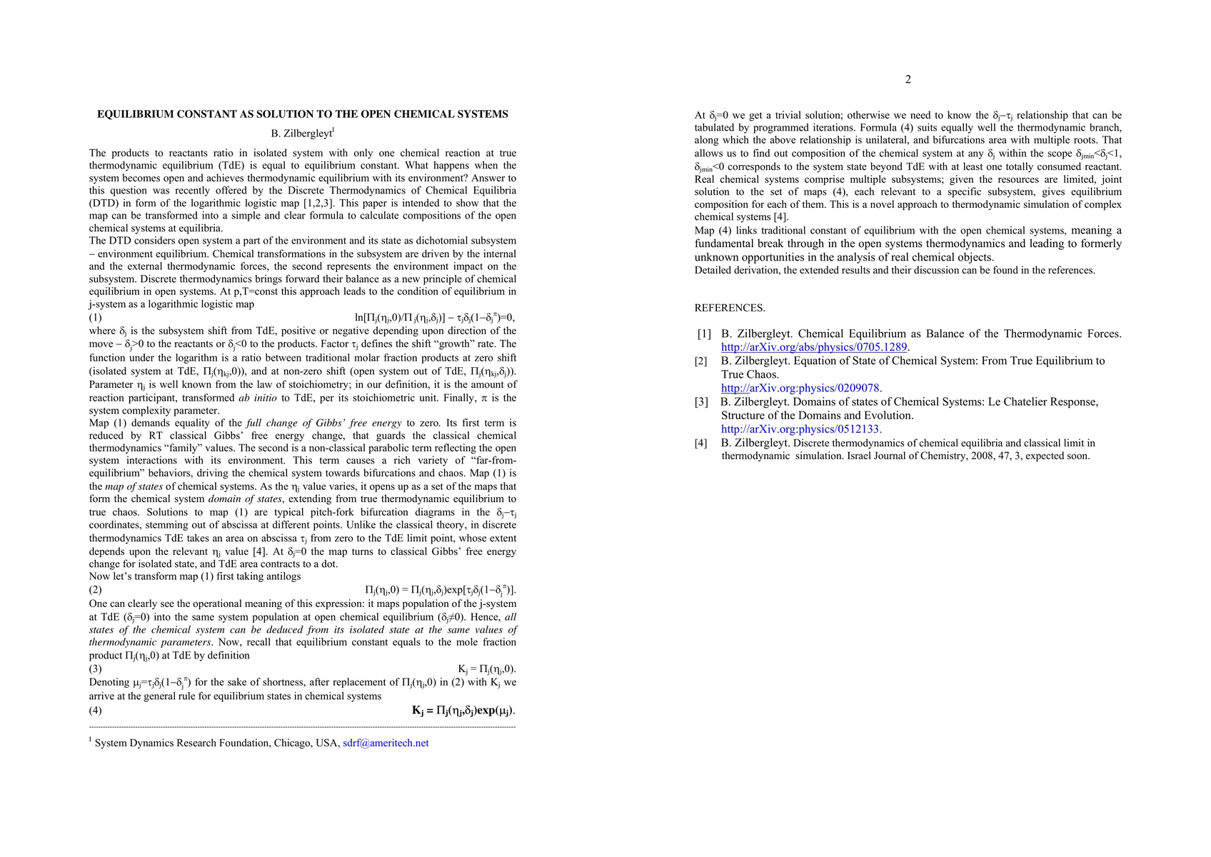 According to contemporary views, equilibrium constant is relevant only to true thermodynamic equilibria in isolated systems with one chemical reaction. The paper presents a novel formula that ties-up equilibrium constant and chemical system composition at any state, isolated or open as well. Extending the logarithmic logistic map of the Discrete Thermodynamics of Chemical Equilibria, this formula maps the system population at isolated equilibrium into the population at any open equilibrium at p,T=const, using equilibrium constant as a measure. Real chemical systems comprise multiple subsystems; given the resources are limited, joint solution to the set of such expressions, each relevant to a specific subsystem, gives equilibrium composition for each of them. This result means a fundamental break through in the open systems thermodynamics and leads to formerly unknown opportunities in the analysis of real chemical objects.