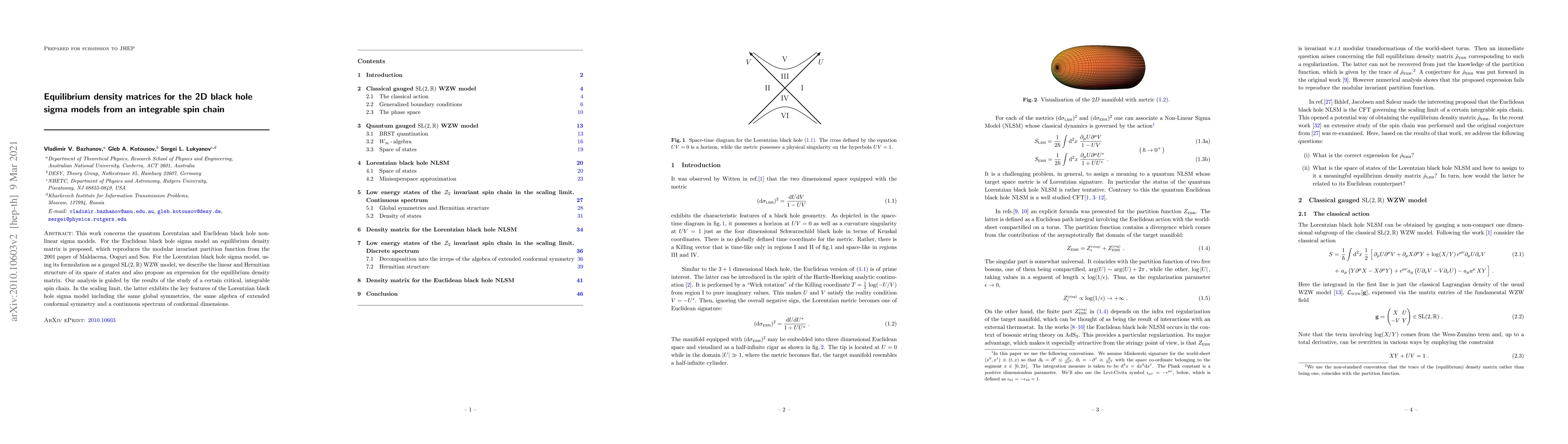 This paper proposes equilibrium density matrices for both the Euclidean and Lorentzian black hole sigma models, guided by the integrable spin chain's structure. The Euclidean model's density matrix reproduces the modular invariant partition function, while the Lorentzian model's density matrix is derived from its ${\rm SL}(2,\mathbb{R})$ WZW formulation.