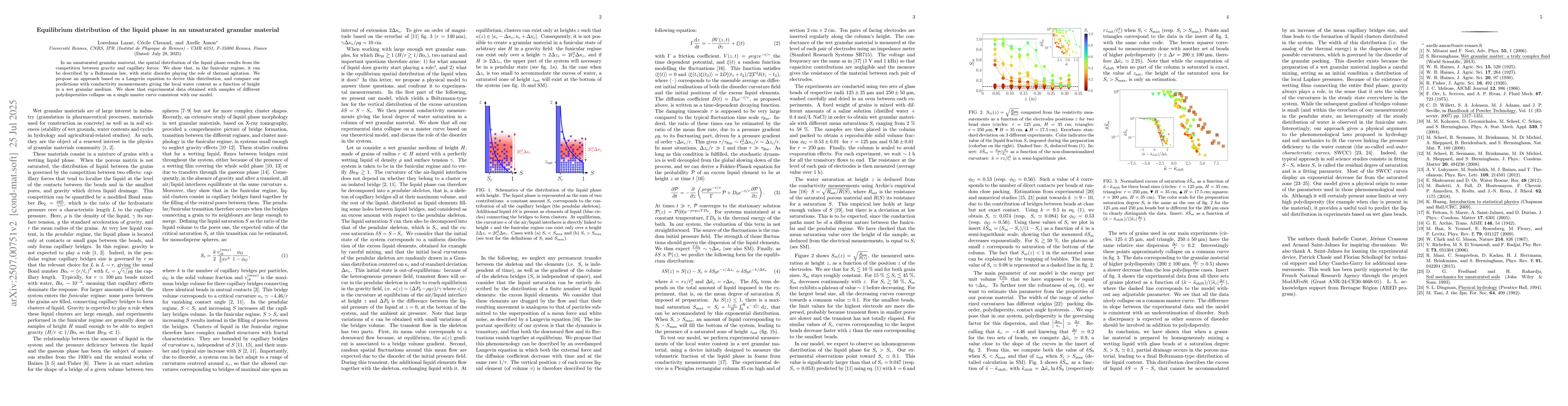 In an unsaturated granular material, the spatial distribution of the liquid phase results from the competition between gravity and capillary forces. We show that, in the funicular regime, it can be described by a Boltzmann law, with static disorder playing the role of thermal agitation. We propose an approach based on a Langevin equation to derive this distribution, and compare our predictions with conductivity measurements giving the local water content as a function of height in a wet granular medium. We show that experimental data obtained with samples of different polydispersities collapse on a single master curve consistent with our model.