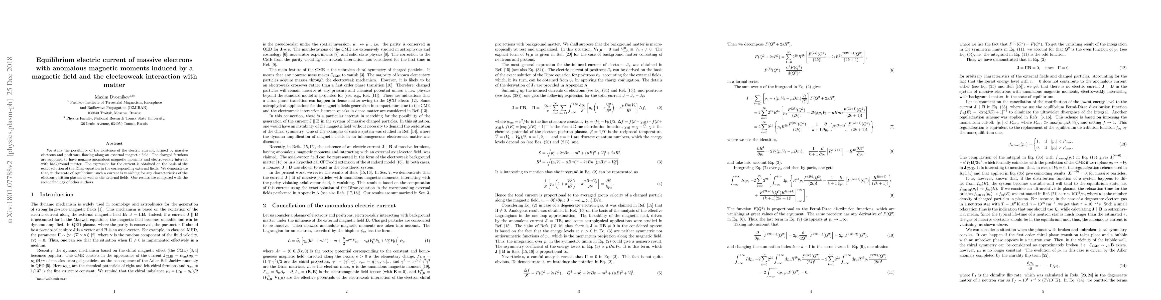 This paper investigates the equilibrium electric current of massive electrons and positrons with anomalous magnetic moments under an external magnetic field and electroweak interactions. The study finds that, in equilibrium, such a current vanishes regardless of the plasma and field conditions, contrasting with some previous findings.