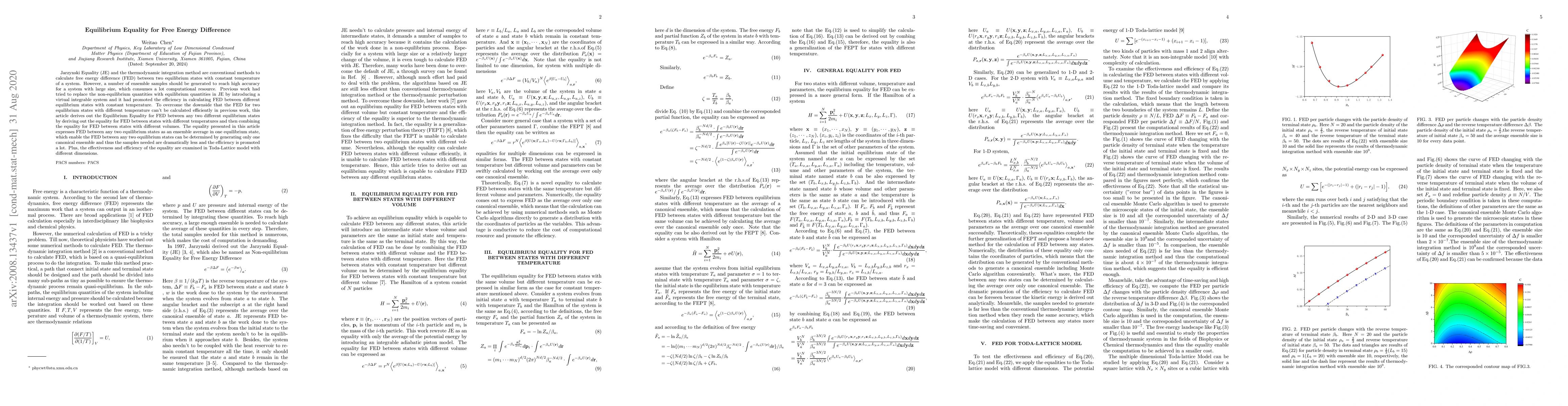 This paper proposes a new Equilibrium Equality for calculating free energy differences between any two equilibrium states, including those with different temperatures. It achieves significant computational efficiency by requiring only one canonical ensemble sample, thus dramatically reducing the needed computational resources. The method's effectiveness is demonstrated through its application to the Toda-Lattice model.