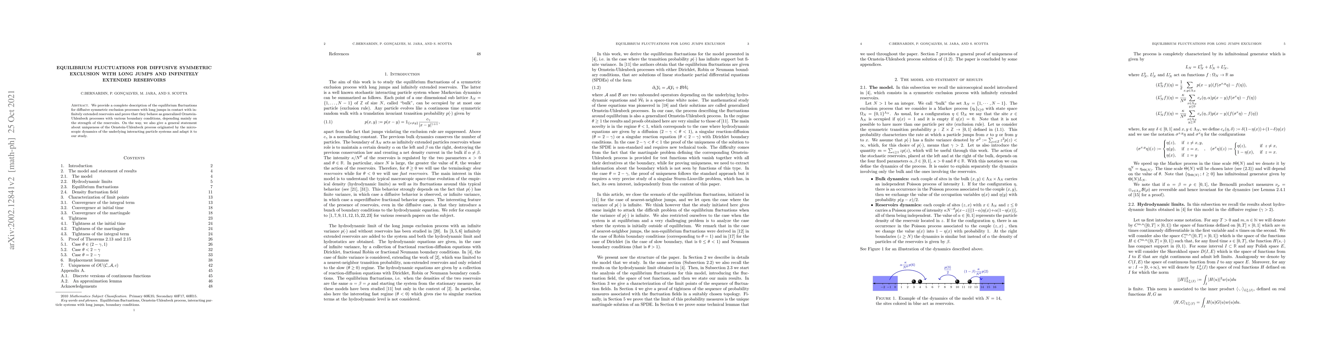 This paper describes the equilibrium fluctuations of diffusive symmetric exclusion processes with long jumps in contact with infinitely extended reservoirs, showing they behave as generalized Ornstein-Uhlenbeck processes with varying boundary conditions based on reservoir strength, and establishes the uniqueness of these processes.