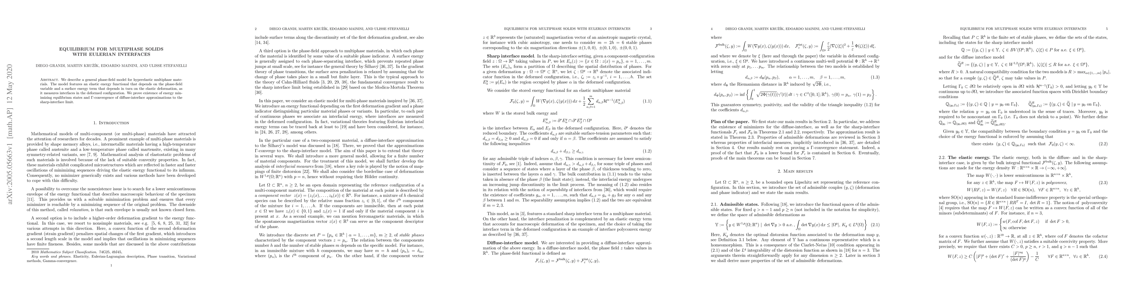 A new phase-field model is introduced for hyperelastic multiphase materials, proving the existence of energy-minimizing equilibrium states and showing how it approximates a sharp-interface limit through $eta$-convergence.