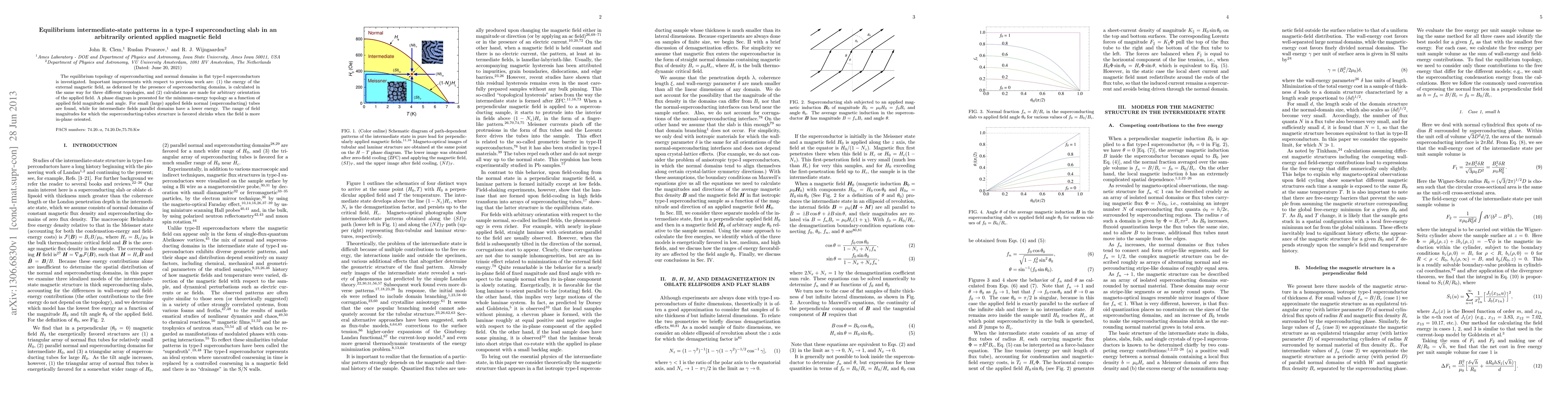 The equilibrium topology of superconducting and normal domains in flat type-I superconductors is investigated. Important improvements with respect to previous work are: (1) the energy of the external magnetic field, as deformed by the presence of superconducting domains, is calculated in the same way for three different topologies, and (2) calculations are made for arbitrary orientation of the applied field. A phase diagram is presented for the minimum-energy topology as a function of applied field magnitude and angle. For small (large) applied fields normal (superconducting) tubes are found, while for intermediate fields parallel domains have a lower energy. The range of field magnitudes for which the superconducting-tubes structure is favored shrinks when the field is more in-plane oriented.