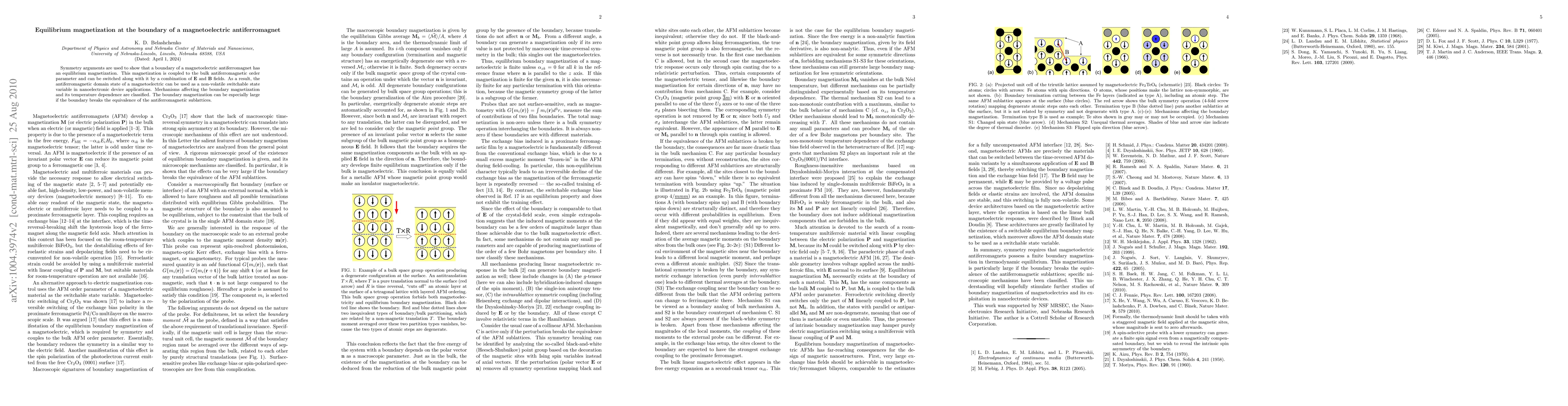 Symmetry arguments are used to show that a boundary of a magnetoelectric antiferromagnet has an equilibrium magnetization. This magnetization is coupled to the bulk antiferromagnetic order parameter and can be switched along with it by a combination of E and B fields. As a result, the antiferromagnetic domain state of a magnetoelectric can be used as a non-volatile switchable state variable in nanoelectronic device applications. Mechanisms affecting the boundary magnetization and its temperature dependence are classified. The boundary magnetization can be especially large if the boundary breaks the equivalence of the antiferromagnetic sublattices.