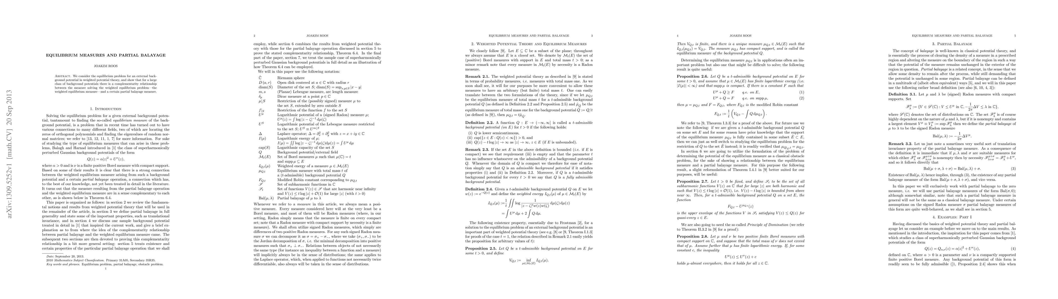 This paper explores the equilibrium problem in weighted potential theory, revealing a complementary relationship between the weighted equilibrium measure and a specific partial balayage measure for a broad class of background potentials.